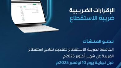 دعت هيئة الزكاة والضريبة والجمارك “زاتكا” المنشآت الخاضعة لضريبة الاستقطاع في المملكة إلى تقديم نماذج استقطاع الضريبة عن شهر أكتوبر…