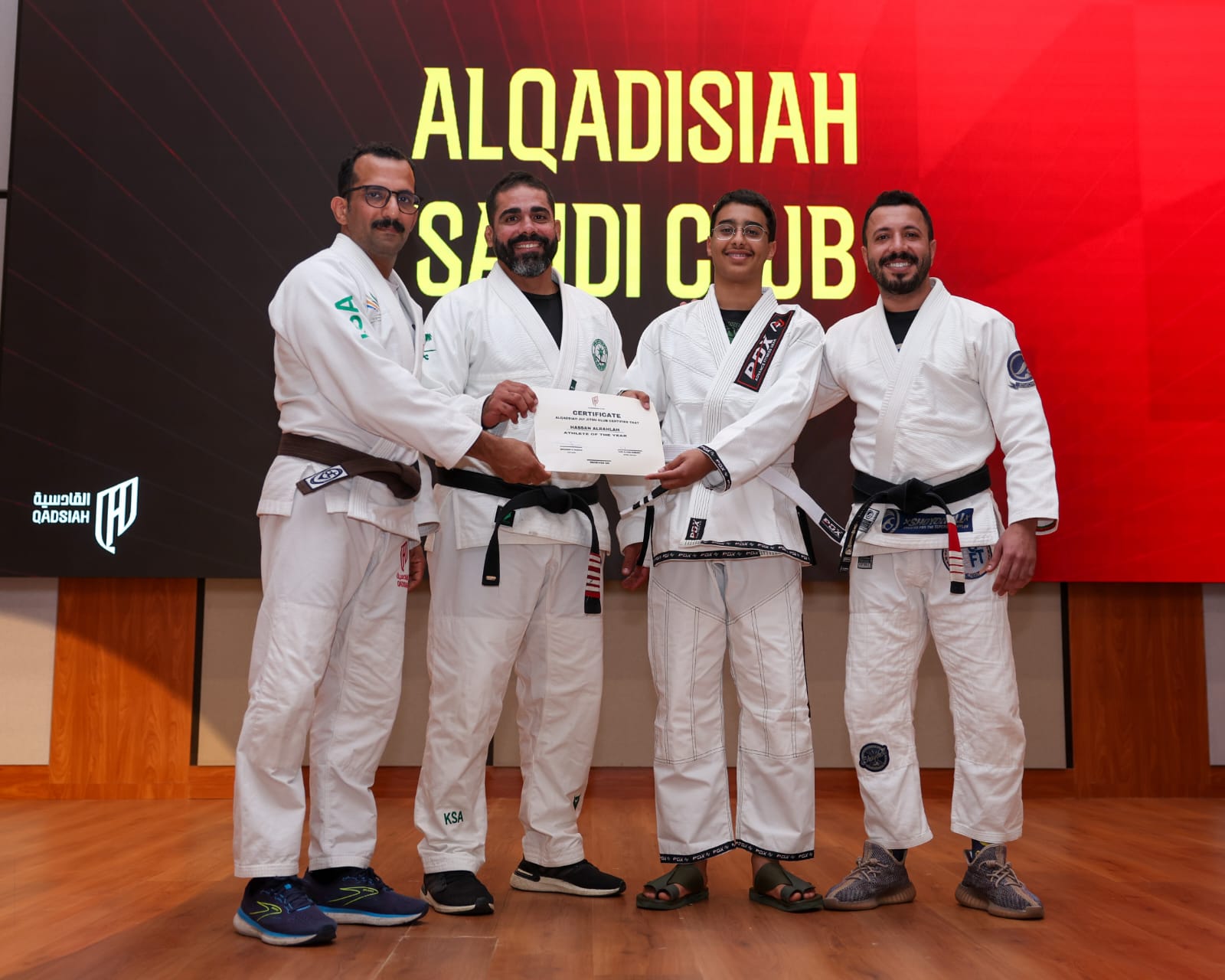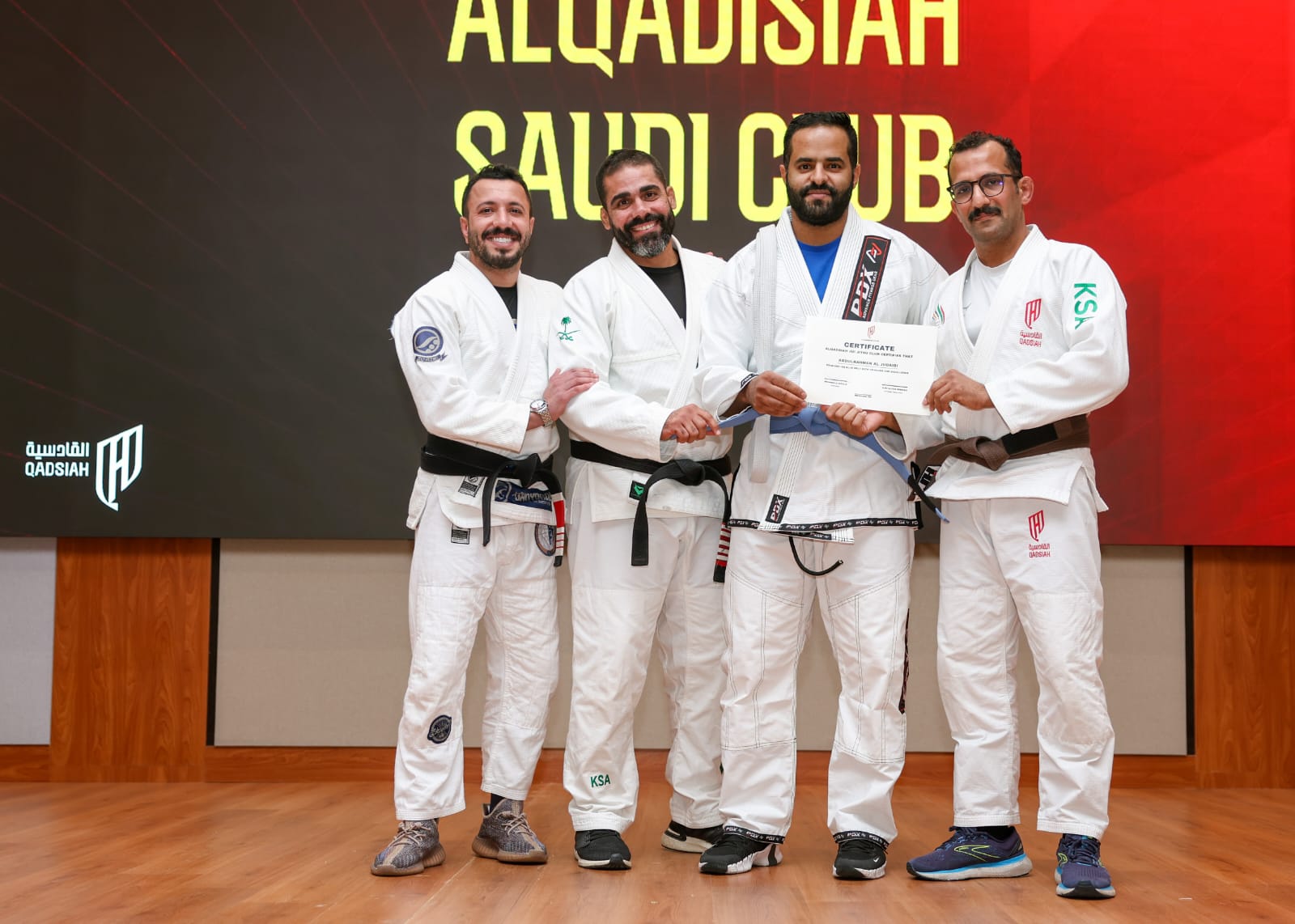 احتفى نادي القادسية، بتأهيل وترقية 20 لاعبًا لأحزمة الجوجيتسو، بحضور المدير التنفيذي للرياضات المتعددة بنادي القادسية ترافورد ويلسون، ومدير الرياضات القتالية والجماعية بنادي القادسية عادل فلاته، ومدرب منتخبنا السعودي للجوجيتسو البرازيلي يوري الفيس.