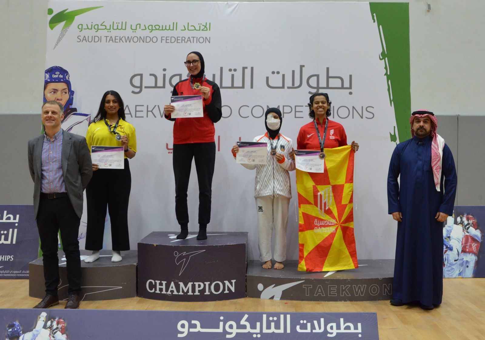حضر منافسات البطولة رئيس مجلس إدارة الاتحاد السعودي للتايكوندو العميد شداد العمري وأعضاء مجلس إدارة الاتحاد بجانب عدداً من إدارة ومشرفي نادي القادسية الذين قدموا درعاً تذكاريا للعميد شداد احتفاءً برعايته لهذا الحدث الرياضي الكبير .