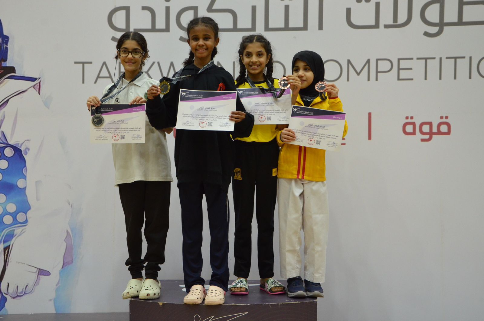 فتيات الشباب يتربعن على قمة التايكوندو