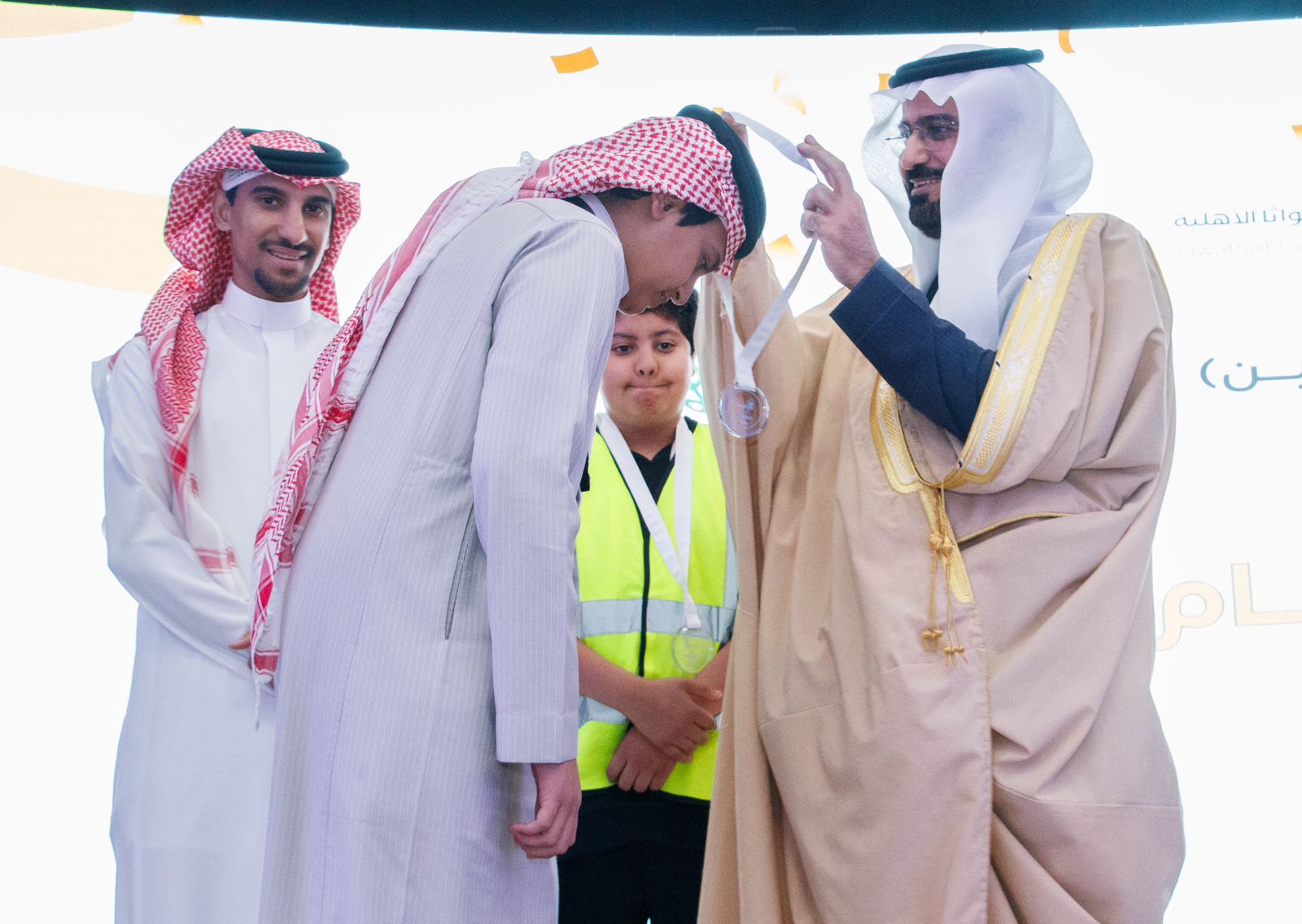 وأما الفائزين من فئة الناشئين، فقد حجب المركز الأول والميدالية الذهبية، وحصلت مدارس الظهران الأهلية على المركز الثاني والميدالية الفضية، والميدالية الفضية “مكرر” لمدارس جواثا الأهلية، والمركز الثالث والميدالية البرونزية مدارس الملك فيصل من الرياض، وحصل على جائزة التميز والمركز الرابع مدارس التربية الأهلية، كما كرّم سعادته الجهات المشاركة والرعاة.