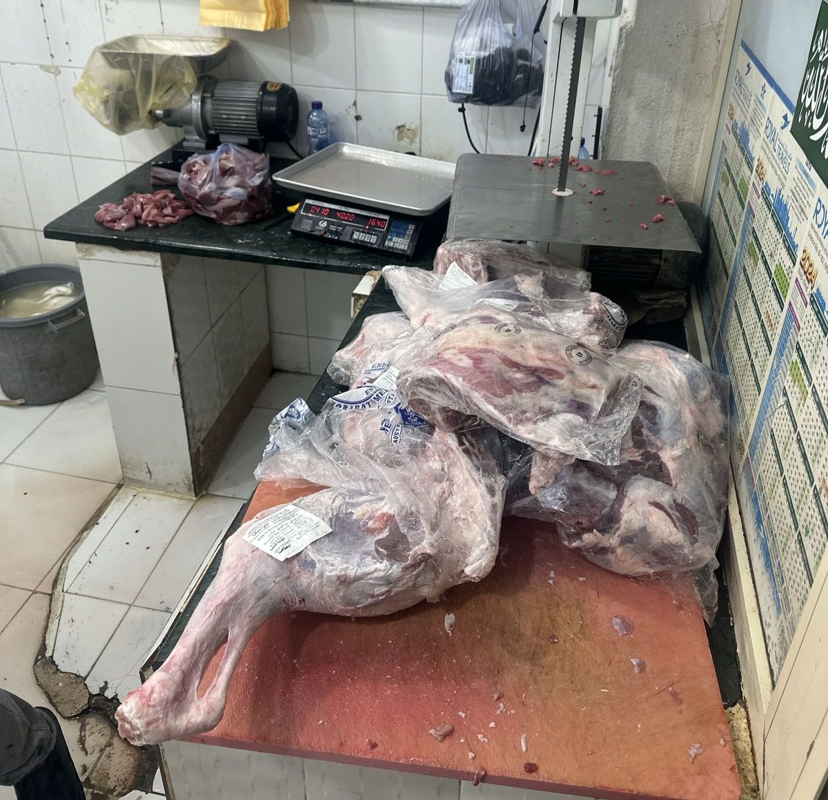 تمكن مكتب وزارة البيئة والمياه والزراعة بمحافظة حفرالباطن ممثلا الأسواق والمسالخ أثناء الجولات الرقابية على سوق الأنعام والمسالخ، من ضبط و اتلاف كمية من اللحوم محل يتم شراء اللحوم المجمدة وعرضها على انها اللحوم طازجه