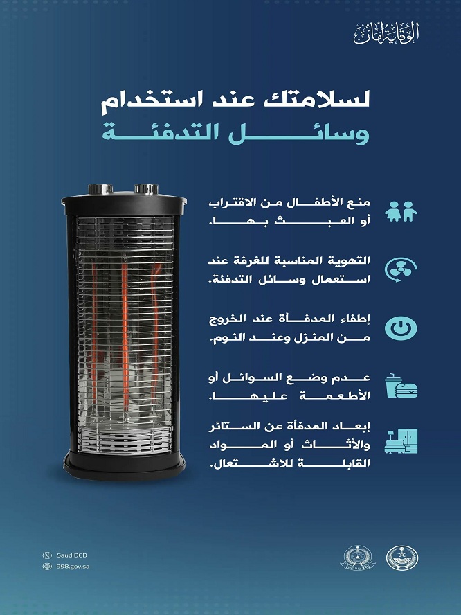 الدفاع المدني يؤكد أهمية اتباع إجراءات السلامة عند استخدام وسائل التدفئة