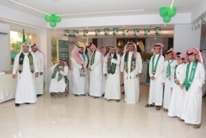 إلى ذلك شهدت مدارس الاحساء مشاركات واسعة بمناسبة اليوم الوطني الـ 94 شارك فيها الطلاب والطالبات والمعلمون والمعلمات، حيث توشح الطلاب والطالبات باللون الأخضر ،فيما أقيمت فعاليات متنوعة ومسابقات مع بداية الاصطفاف الصباحي.