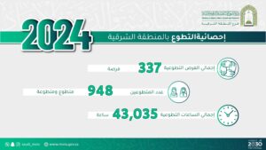 تنفيذ 337 فرصة تطوعية خلال عام 2024م بالمنطقة الشرقية