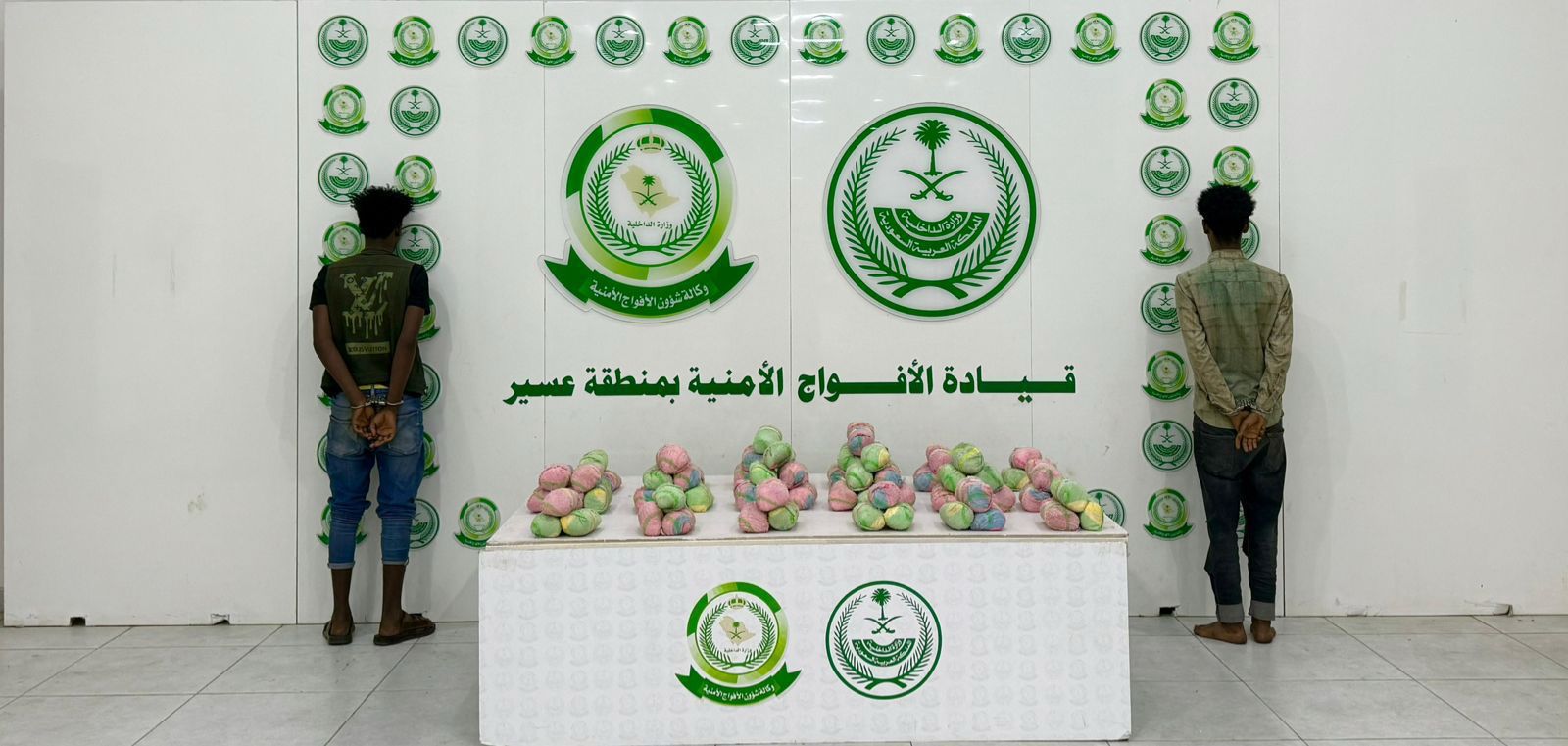 دوريات الأفواج الأمنية بمنطقة عسير تقبض على مخالفَيْن لنظام أمن الحدود لتهريبهما نبات القات المخدر