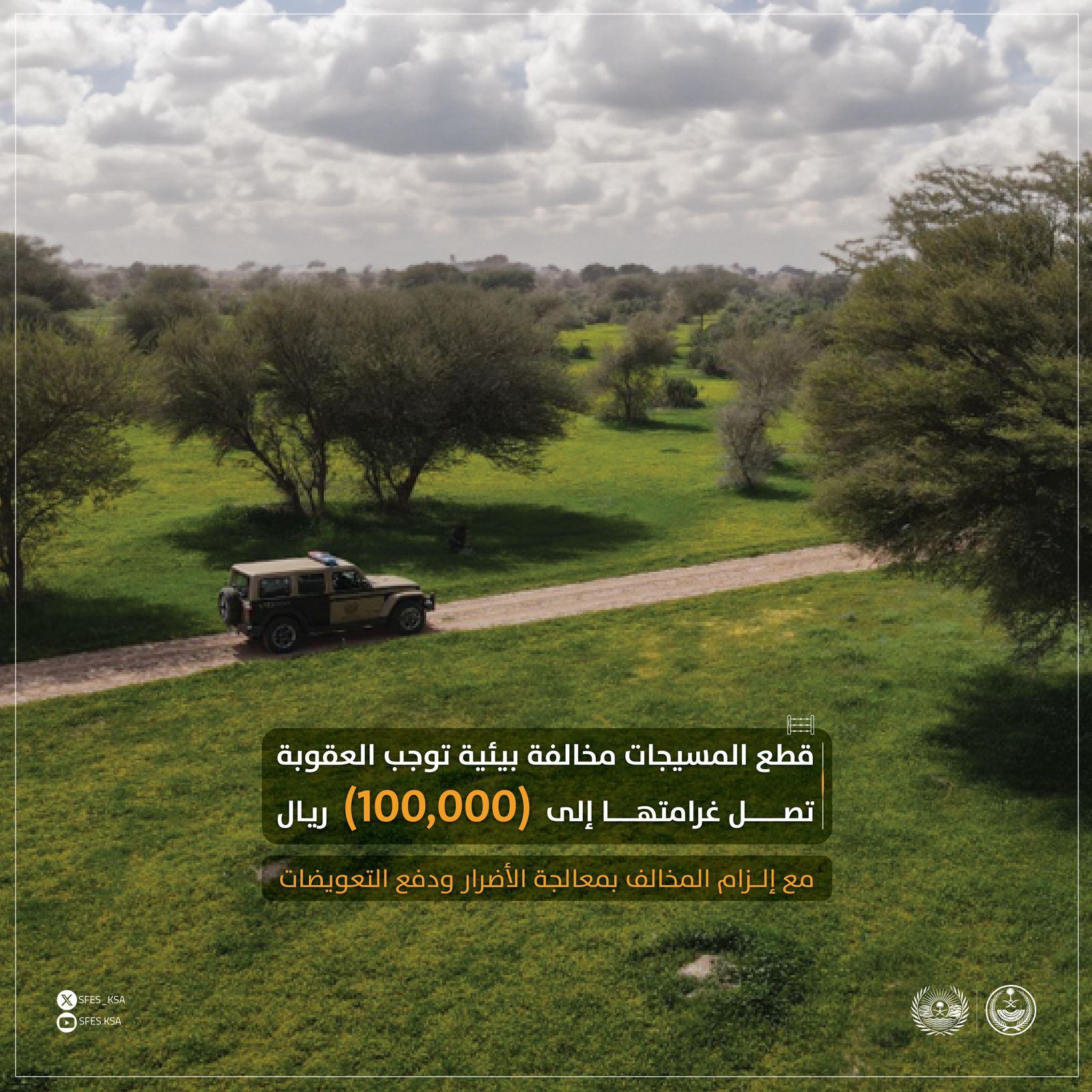 وأكدت القوات أن عقوبة ودخول المحميات دون ترخيص غرامة (5000)﷼، وعقوبة قطع أو إتلاف مسيجات المناطق المحمية تصل إلى (100,000)﷼، مع إلزام المخالف بمعالجة الأضرار ودفع التعويضات.