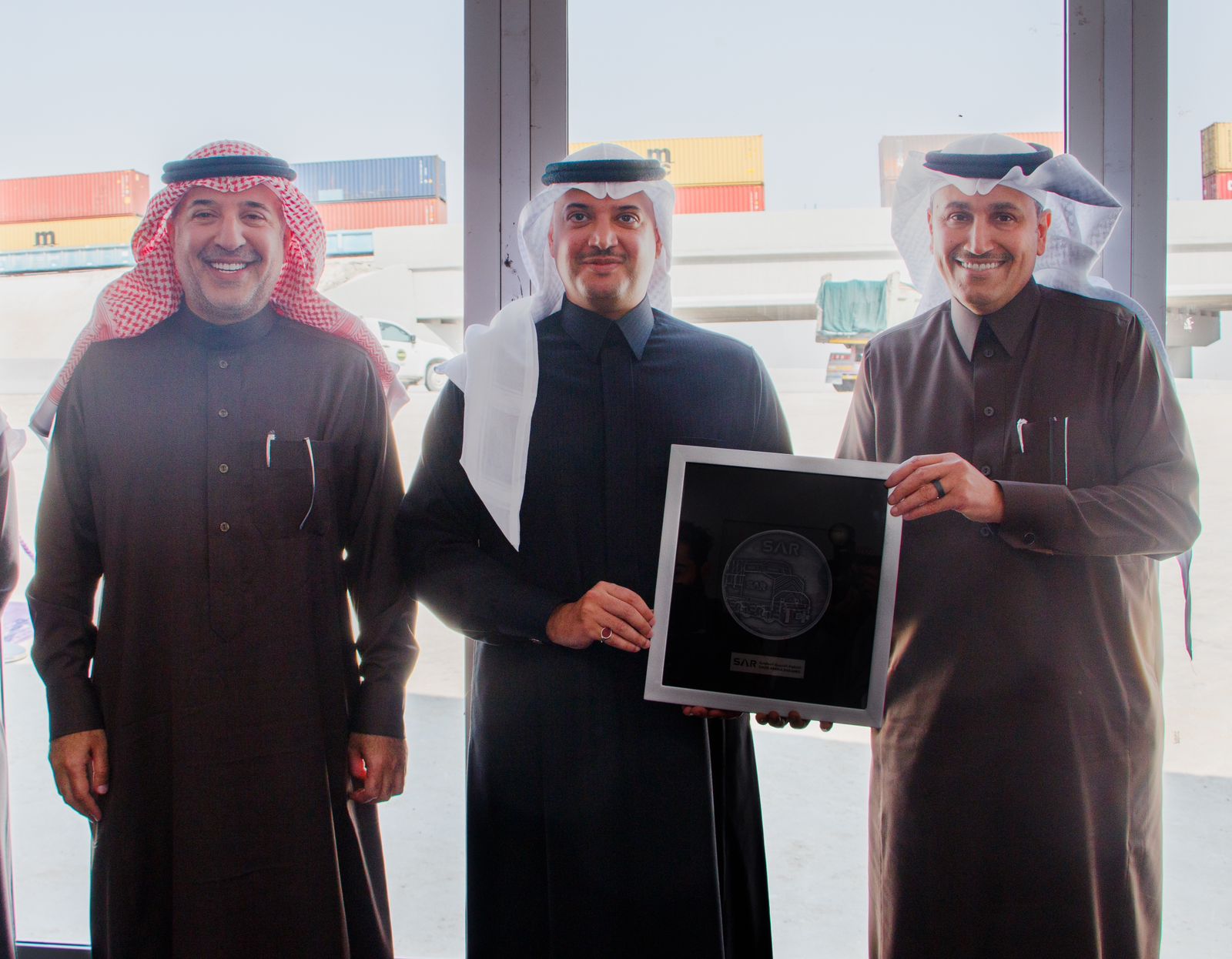 وخلال التدشين ، اطلع سموّه على شرح مفصل من الفريق الهندسي المشرف على المشروع، كما شهدوا سموّه ومعاليه والحضور مرور أحد القطارات المتجهة من ميناء الملك عبد العزيز بالدمام إلى ميناء الرياض الجاف.