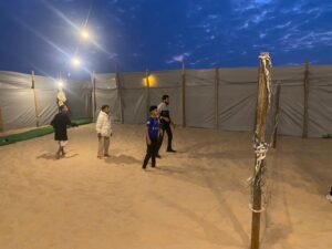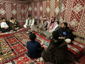 نفذت دار التوجيه الاجتماعي بالدمام رحلة برية لابنائها المستفيدين بمخيمات (آر بي بالدمام، حيث استمتع الأبناء بالأجواء الشتوية الجميلة، حيث تعلموا كيفية شبة . النار وعمل القهوة السعودية وطريقة إضافة إلى ذلك فقد وفرت الدار فرصة لهم لركوب الدراجات الصحراوية .. تقديمها للضيوف. كما وأقيمت منافسات رياضية بينهم في لعبتي كرة القدم وكرة الطائرة، وقد شارك عدد من منسوبي الدار في هذه ما بين صلاتي المغرب والعشاء لتقديم بعض والارشادات للابناء و أهمية الالتزام والتقيد بتعاليم ديننا الحنيف والحرص والمواظبة على أداء الصلوات في أوقاتها. وأهمية الأسرة في حياتهم، وفي الختام اجتمع الجميع لتناول وجبة إضافة إلى ضرورة احترام الوالدين واهميةالعشاء المعدة بهذه المناسبة.