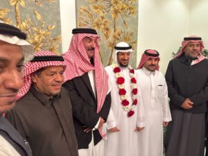 وكان الاستاذ خالد بن عبدالله المنصور الاخ الاصغر لمنصور قدتبنى هذه المبادرة وعبر الجميع عن شكرهم وتقديرهم للاستاذ خالد على مبادرته فيما قدم الاستاذ منصور شكره لكل من حضر وهنأ على هذا الانجاز وقدم شكره وتقديره لخادم الحرمين الشريفين الملك سلمان بن عبدالعزيز ولسمو ولي عهده صاحب السمو الملكي الأمير محمد بن سلمان على اهتمامهما بالعلم والتعليم في المملكة ليصل الى اعلى المراتب متفوقا عالميا كما قدم شكره لوزارة التربية والتعليم ولتعليم الأحساء لدعم في تحقيق هذا الانجاز وقدم المستقبلون تهنئتهم الصادقة للمنصور على انجازه وتمنوا له التوفيق والسداد.