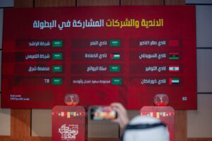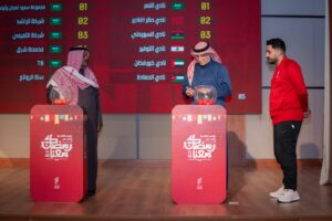 وضمت المجموعة الأولى فرق: “التوفير اللبناني، خورفكان الإماراتي، سلة الروائع، مجموعة سعيد غدران وأولاده”، والمجموعة الثانية “الحمادة الأردني، النصر السعودي، محمصة شرق، وشركة التميمي”، بينما المجموعة الأخيرة “صقر أغادير المغربي، السويحلي الليبي، شركة الراشد TB”.