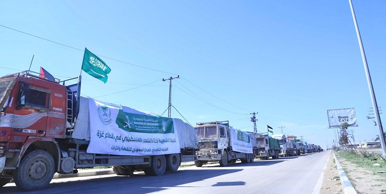 وصول قوافل إغاثية سعودية جديدة إلى شمال قطاع غزة