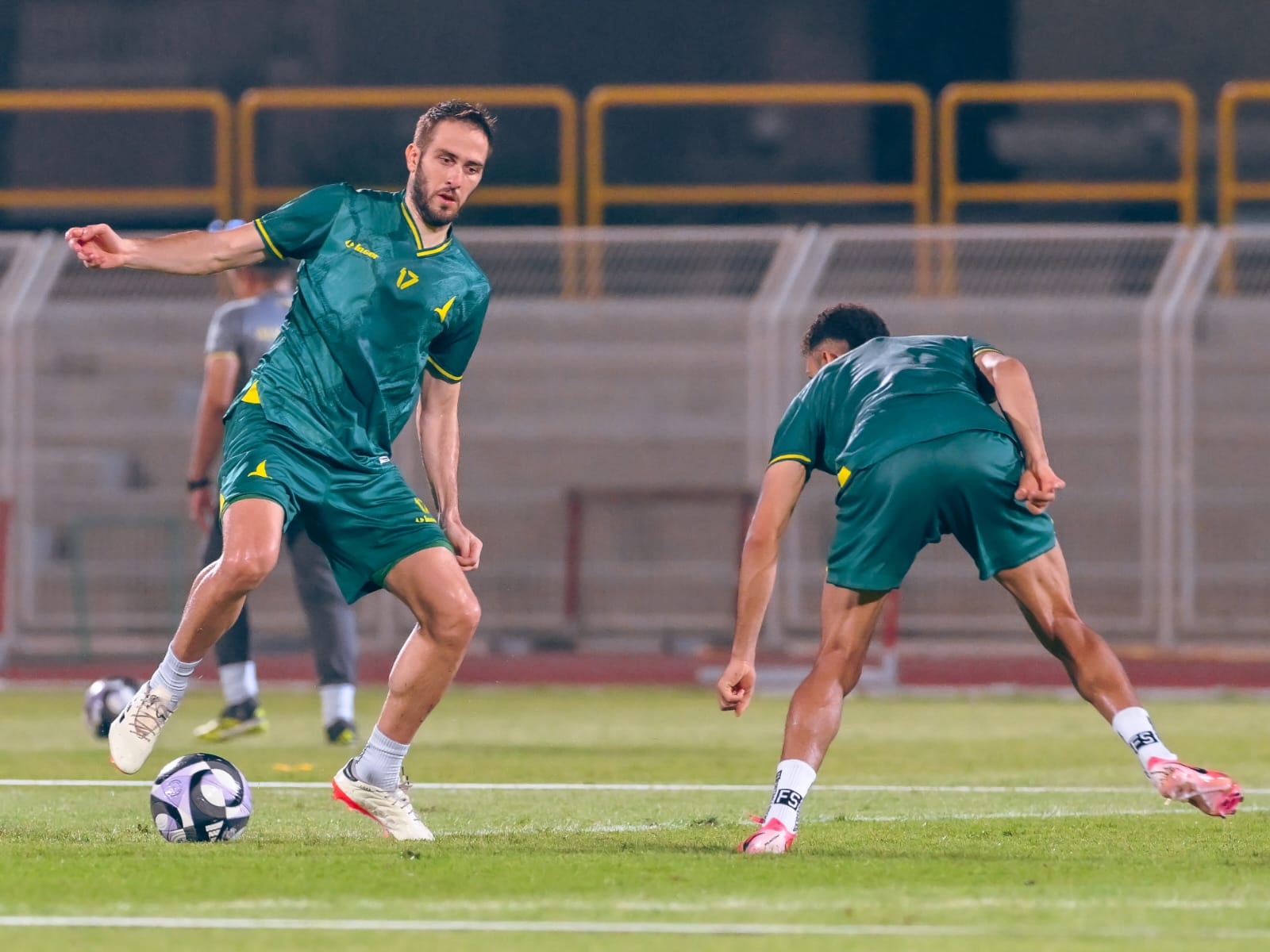 ركز الجهاز الفني على التدريبات اللياقية باستخدام الكرة ثم الانتقال للجانب التكتيكي من لمسة واحدة قبل أن يبدأ الفريق في تطبيق بعض الجمل الفنية على مرمى واحد.