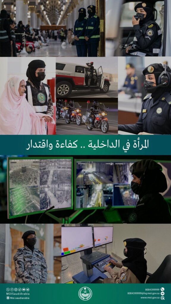وأظهرت عددًا من الصور والمرئيات كفاءة واقتدار وقوة وعزيمة المرأة السعودية على كافة الأصعدة منها الأمنية والطبية ومساهمتها في مفهوم الوطن الآمن المزدهر .