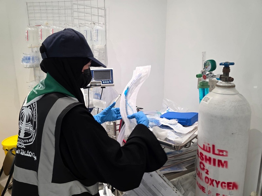 فتيات الكشافة في خدمة المرضى في مراكز الحرمين