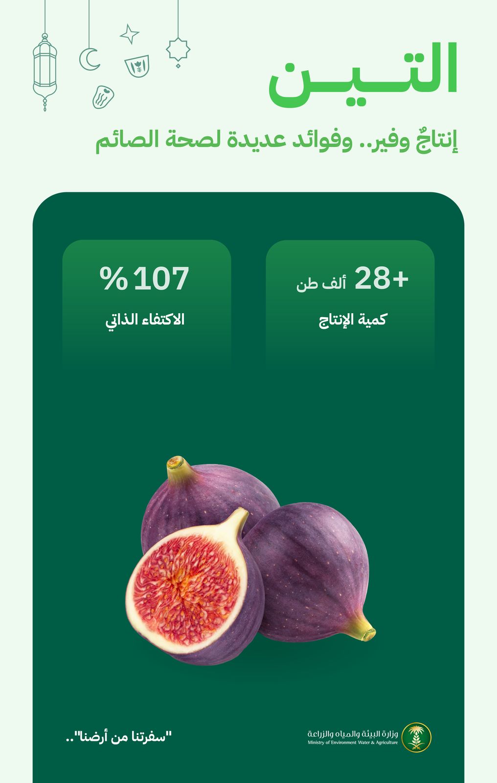 وأوضحت الوزارة خلال حملتها “سفرتنا من أرضنا” التي أطلقتها خلال الشهر الكريم، أن التين يُعد من الفواكه الاستراتيجية في المملكة، كما يشهد طلبًا متزايدًا خلال المواسم الزراعية، مشيرةً إلى أن الإنتاج المحلي يغطي الاحتياج الاستهلاكي ويعزز وفرة المنتجات الوطنية في الأسواق.