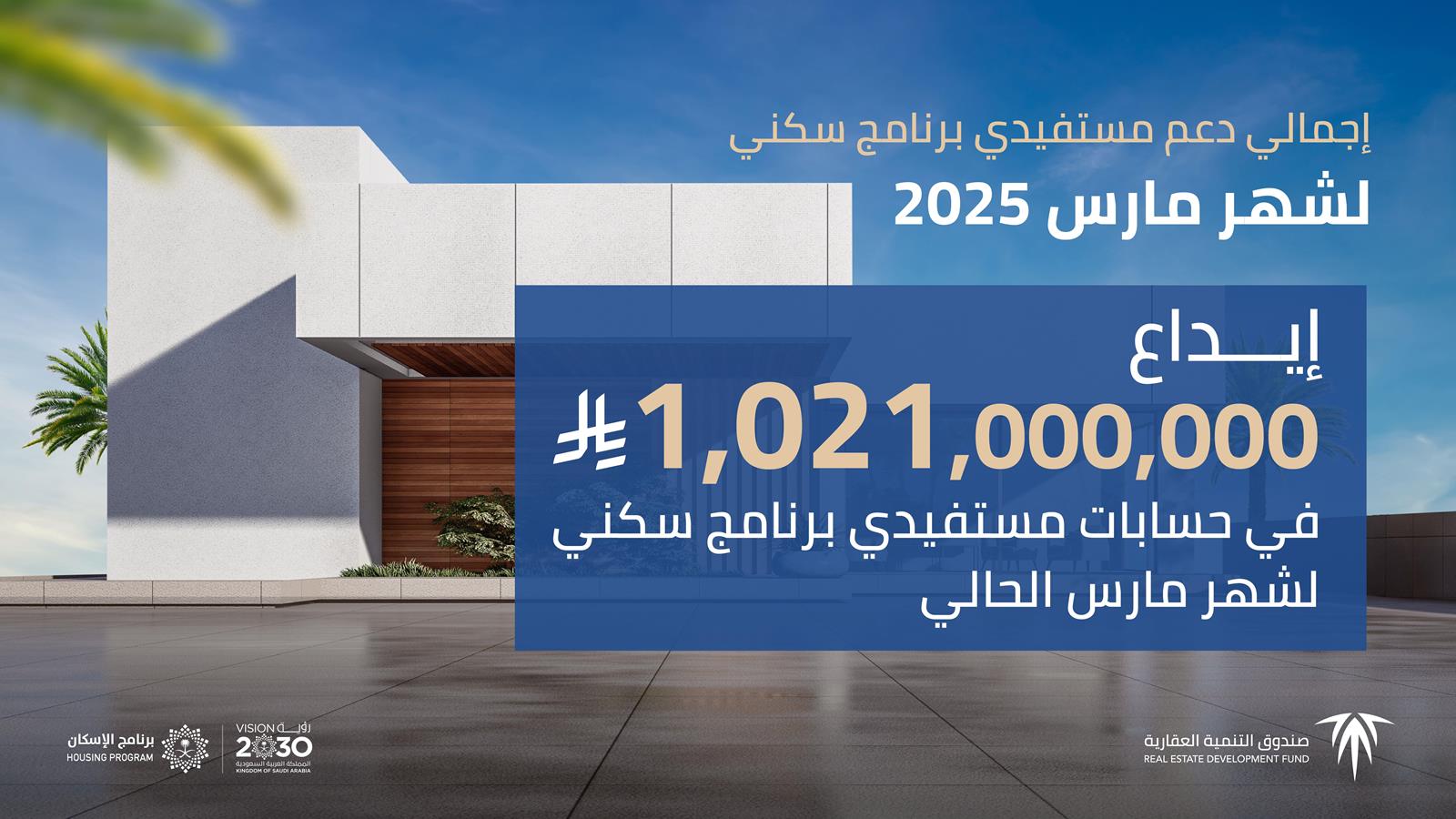 أودع صندوق التنمية العقارية اليوم، مليارًا و21 مليون ريال، في حسابات مستفيدي برنامج “سكني”، من وزارة البلديات والإسكان والصندوق العقاري لشهر مارس 2025م.
