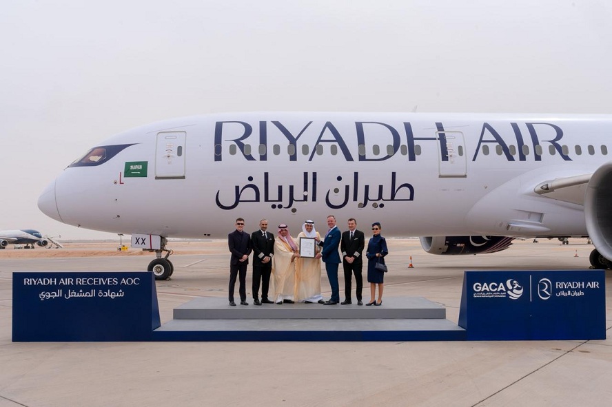 بحضور معالي وزير النقل والخدمات اللوجستية، رئيس مجلس إدارة الهيئة العامة للطيران المدني، المهندس صالح بن ناصر الجاسر، سلّم معالي رئيس الهيئة العامة للطيران المدني، الأستاذ عبدالعزيز بن عبدالله الدعيلج، اليوم، شهادة المشغّل الجوي (AOC) للرئيس التنفيذي لشركة طيران الرياض، توني دوغلاس؛ لبدء تشغيل رحلاتها الجوية المنتظمة من وإلى مطارات المملكة.