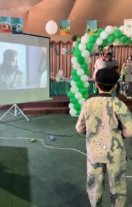 وذكر المعلم المشرف على برامج المعهد الأستاذ مازن الغامدي: “نحتفل بهذا اليوم العظيم مع أبنائنا من ذوي التوحد وتعدد العوق، وبهذه المناسبة أرفع أسمى آيات التهاني والتبريكات لقيادتنا الرشيدة ولأبنائنا الطلاب، وفي الختام أشكر كل من ساهم في نجاح هذا الاحتفال في مقدمتهم مدير المعهد الأستاذ محمد القحطاني، وكافة الزملاء، كما أشكر أسر أبنائنا الطلاب على حضورهم ومساندتهم لأبنائهم، سائلين المولى عز وجل أن يديم علينا نعمة الأمن والأمان”.