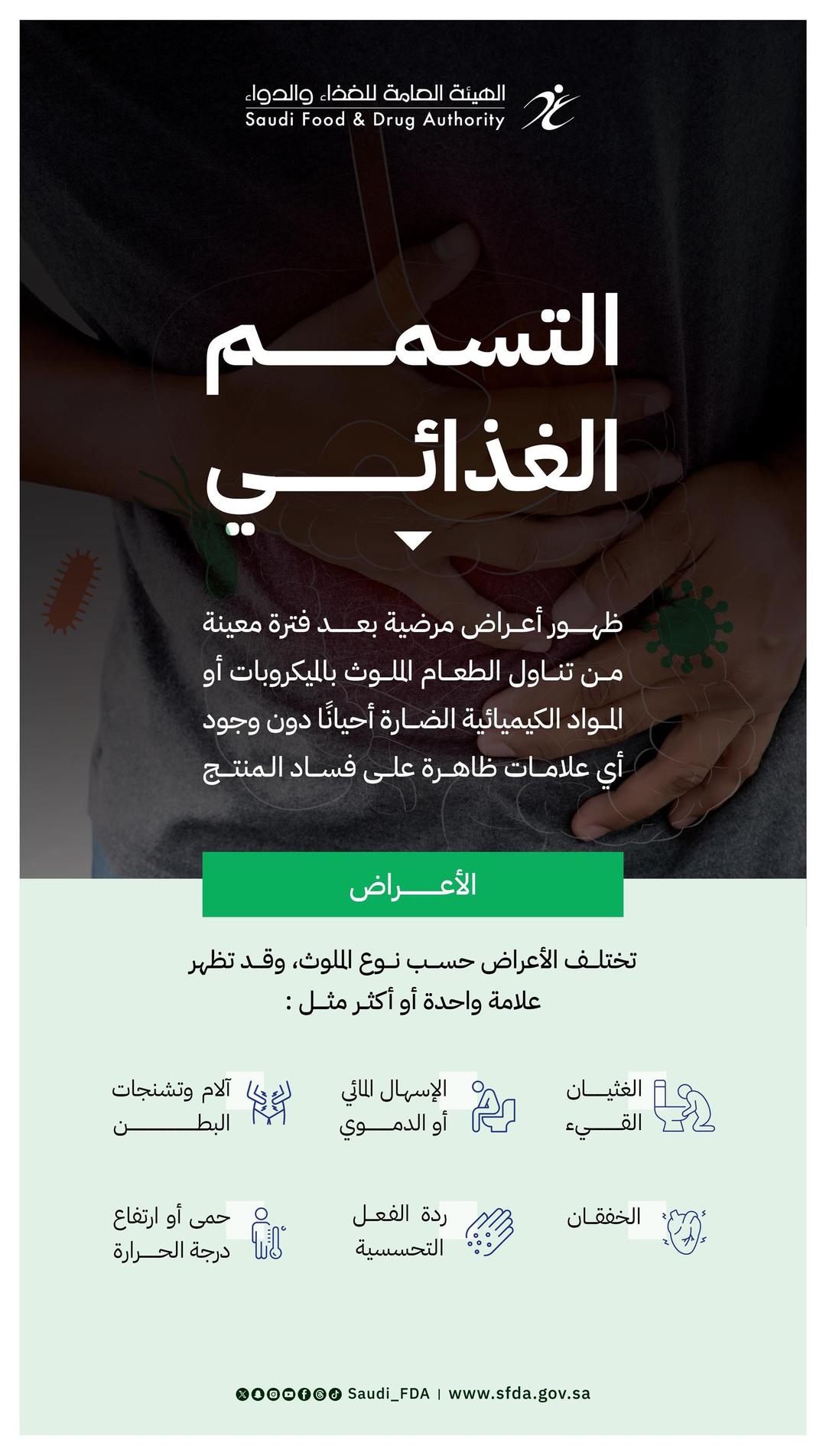 أوضحت الهيئة العامة للغذاء والدواء، ستة أعراض لحدوث التسمم الغذائي.