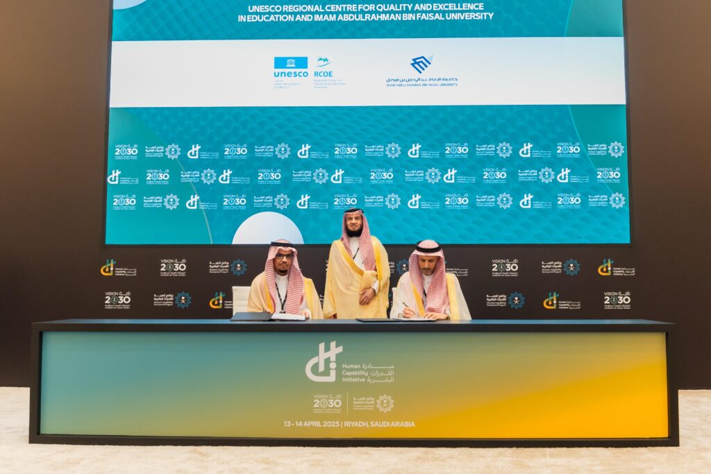 وقّعت جامعة الإمام عبد الرحمن بن فيصل، ممثّلة بسعادة رئيسها المكلّف الأستاذ الدكتور فهد بن أحمد الحربي، مذكرة تفاهم مع المركز الإقليمي للجودة والتميّز في التعليم، التابع لمنظمة الأمم المتحدة للتربية والعلم والثقافة (اليونسكو)، وذلك على هامش أعمال المؤتمر الدولي للتعليم المنعقد في الرياض.