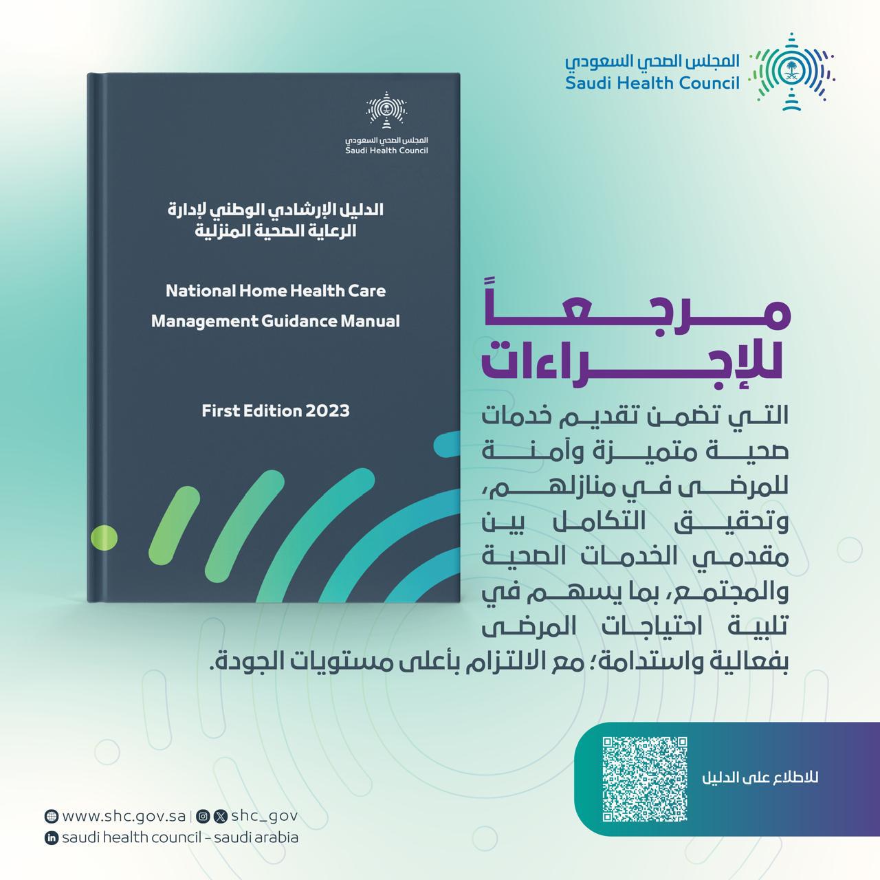أصدر المجلس الصحي السعودي الدليل الإرشادي الوطني لإدارة الرعاية الصحية المنزلية؛ بهدف رفع جودة وكفاءة الخدمات الصحية وتحسين آليات تقديم الرعاية الصحية المنزلية، وتزويد المتخصصين بالأدوات والمعايير الأساسية وتمكينهم من أداء مهامهم بسلامة وجودة عالية، حيث يعد الدليل مرجعاً للإجراءات التي تضمن تقديم خدمات صحية متميزة وآمنة للمرضى في منازلهم، وتحقيق التكامل بين مقدمي الخدمات الصحية والمجتمع، بما يسهم في تلبية احتياجات المرضى بفعالية واستدامة، مع الالتزام بأعلى مستويات الجودة.