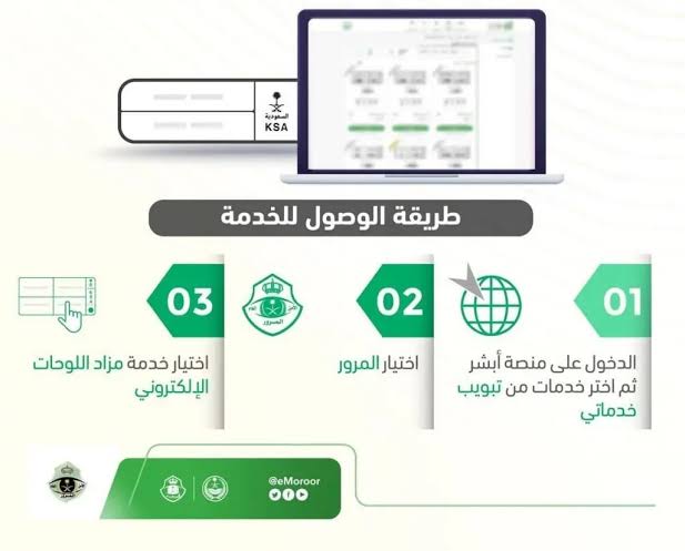 قالت الإدارة العامة للمرور، إن «منصة أبشر تمكن المستخدمين من المشاركة في المزاد وشراء اللوحات إلكترونيًا من جميع أنحاء المملكة، دون الحاجة إلى زيارة مقرات المرور».