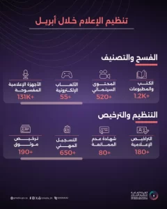 وأضافت أنه جرى، خلال الشهر الماضي أيضًا، فسح وتصنيف 1.2 ألف من الكتب والمطبوعات، و55 من الألعاب الإلكترونية، و131 ألف جهاز إعلامي.
