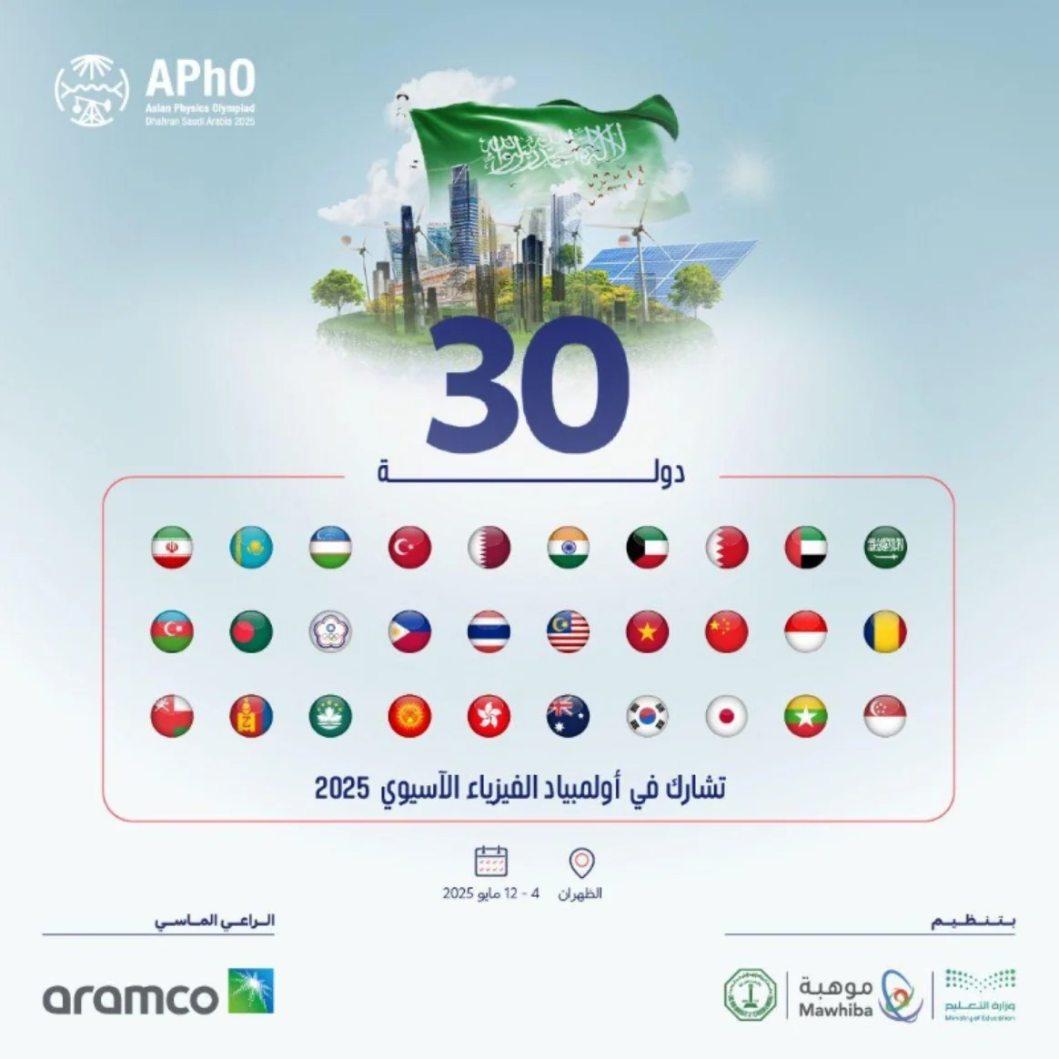 تستضيف المملكة النسخة الـ25 من أولمبياد الفيزياء الآسيوي 2025 “APhO”، بالفترة من 4 إلى 12 مايو الجاري، بتنظيم مشترك بين وزارة التعليم، ومؤسسة الملك عبدالعزيز ورجاله للموهبة والإبداع “موهبة”، وجامعة الملك فهد للبترول والمعادن، في مقر الجامعة بمدينة الظهران، وبرعاية حصرية من شركة أرامكو.
