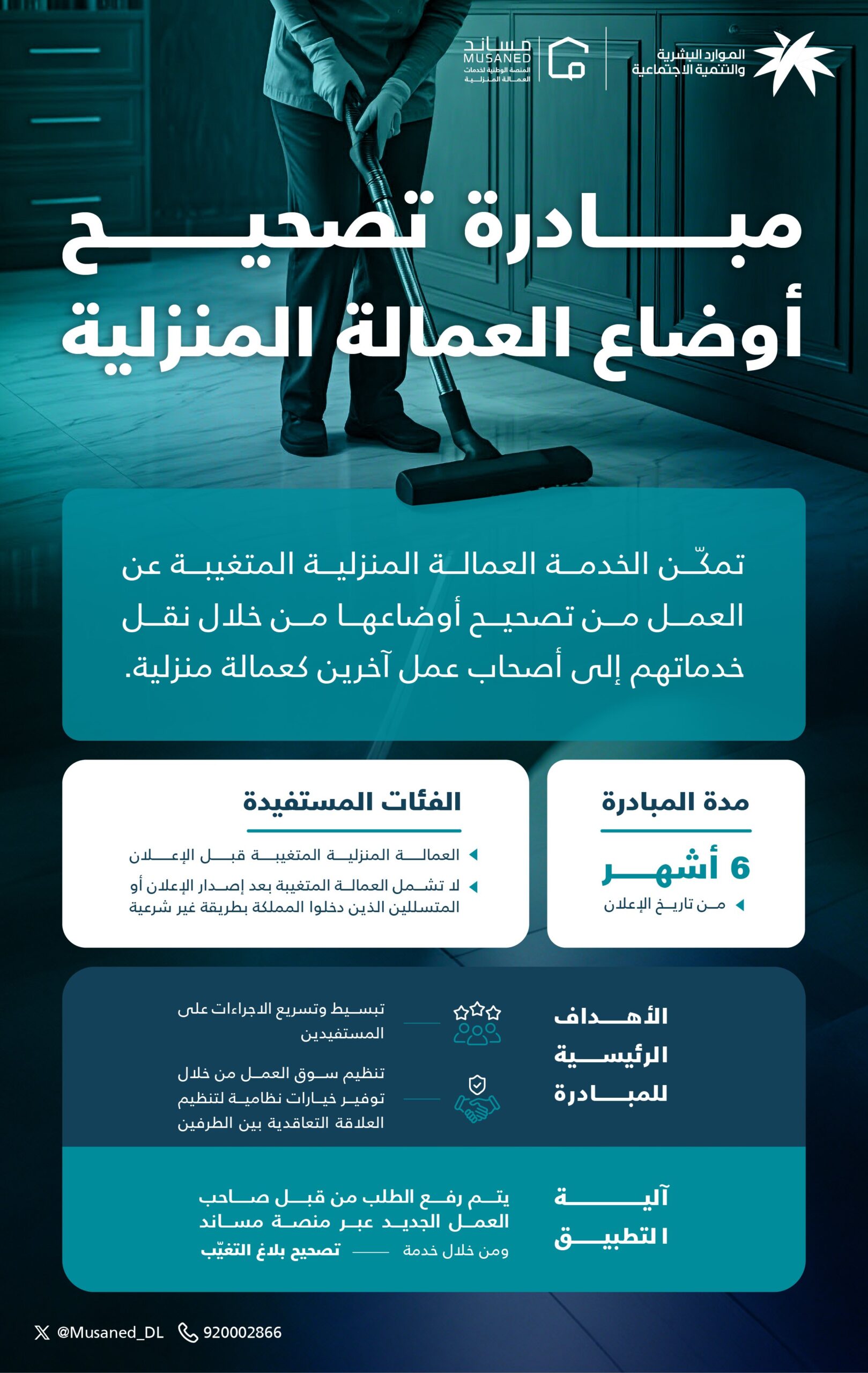 مهلة لتصحيح أوضاع العمالة المساندة (العمالة المنزلية) المتغيبة عن العمل