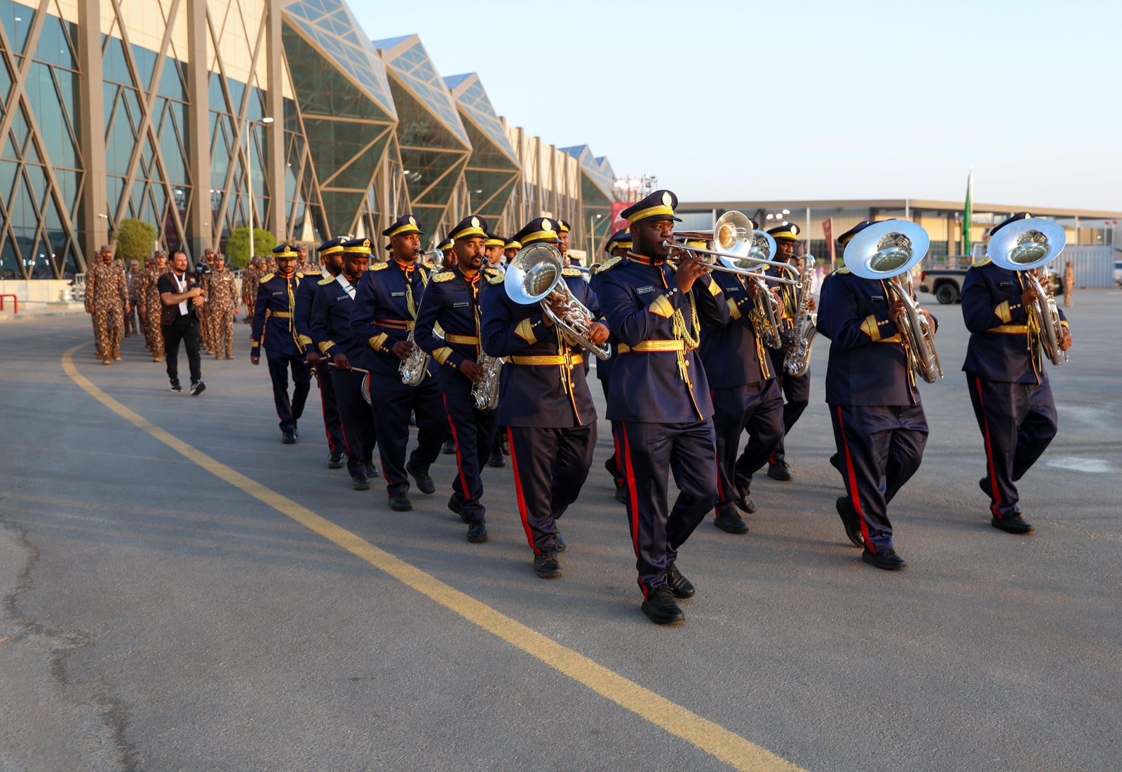 وحظي الزوار بمشاهدة عروض للفرقة الموسيقية والخيالة والهجانة، بمشاركة قوات أمنية مشتركة والدورية الراجلة بالزيّ التاريخي، وسيارة البيرق.