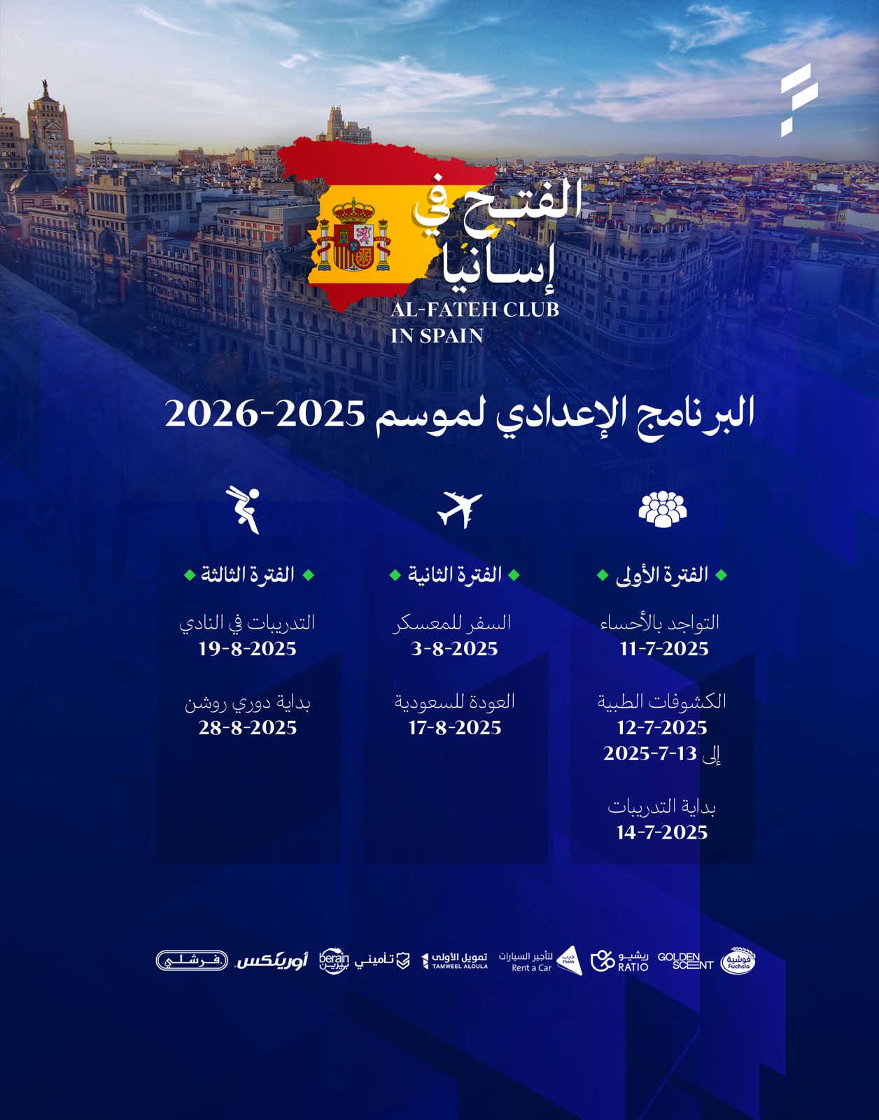 نادي الفتح يُعلن عن البرنامج الإعدادي للموسم المقبل … بثلاث مراحل ومُعسكر خارجي للفريق في إسبانيا