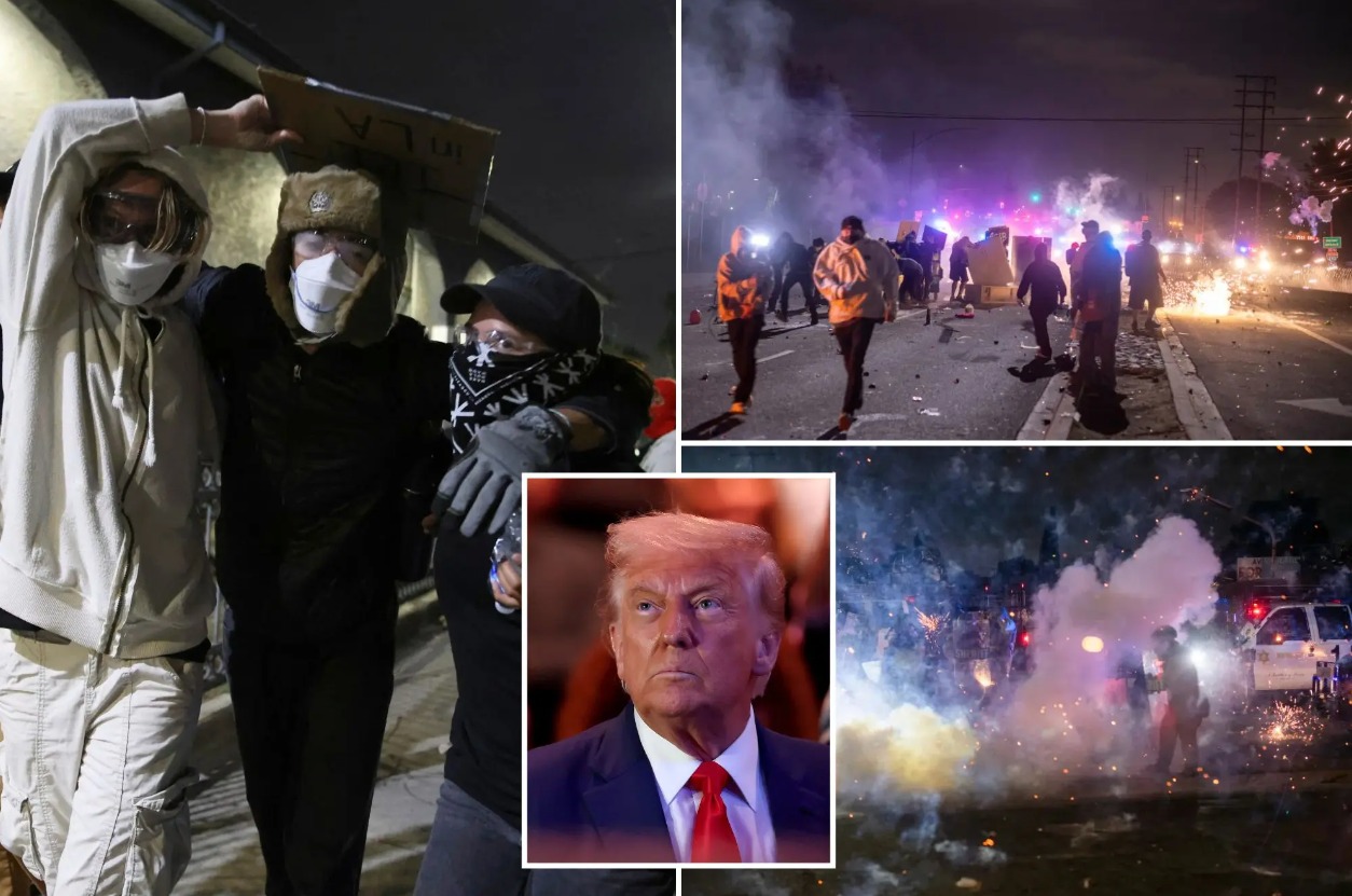 في تصريح لصحافيين بشأن محتجين على عمليات دهم تجريها سلطات الهجرة في ولاية كاليفورنيا، قال ترامب “هناك أشخاص عنيفون، ولن نسمح لهم بالافلات (من العقاب) عن ذلك”.
