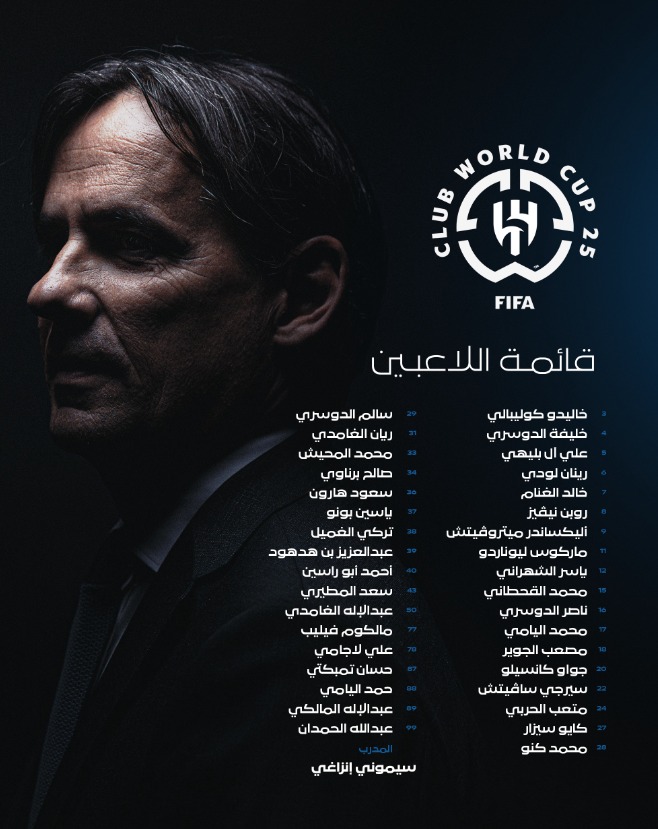 أعلن الهلال اليوم عن قائمة لاعبي الفريق الأول التي ستغادر إلى الولايات المتحدة الأميركية للمشاركة في كأس العالم للأندية تحت قيادة المدرب الإيطالي سيموني إنزاغي.