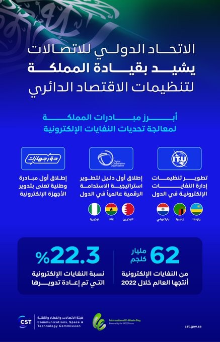 الاتحاد الدولي للاتصالات يشيد بجهود المملكة لتنظيمات الاقتصاد الدائري الرقمي