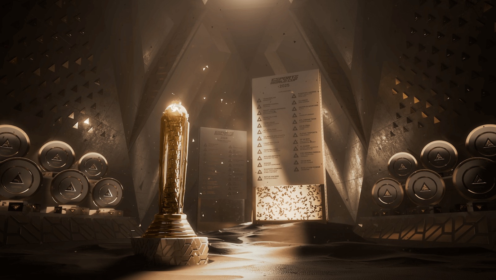 وعند فوز فريق أو لاعب ببطولة، يُوضع مفتاحه داخل درع البطولة الخاصة به، ليكتمل بذلك تصميم الكأس معلناً انتصاره. وبعدها يوضع إطار المفتاح الفائز داخل الحائط الشرفي للأبطال الذي يُعد بمثابة سِجل يوثق أسماء الأندية واللاعبين والألعاب التي تُشكّل ملامح كأس العالم للرياضات الإلكترونية 2025. وسيظل الحائط الشرفي للأبطال معروضاً طوال البطولة وما بعدها، كتقدير دائم للتفوق والتنافس النزيه.