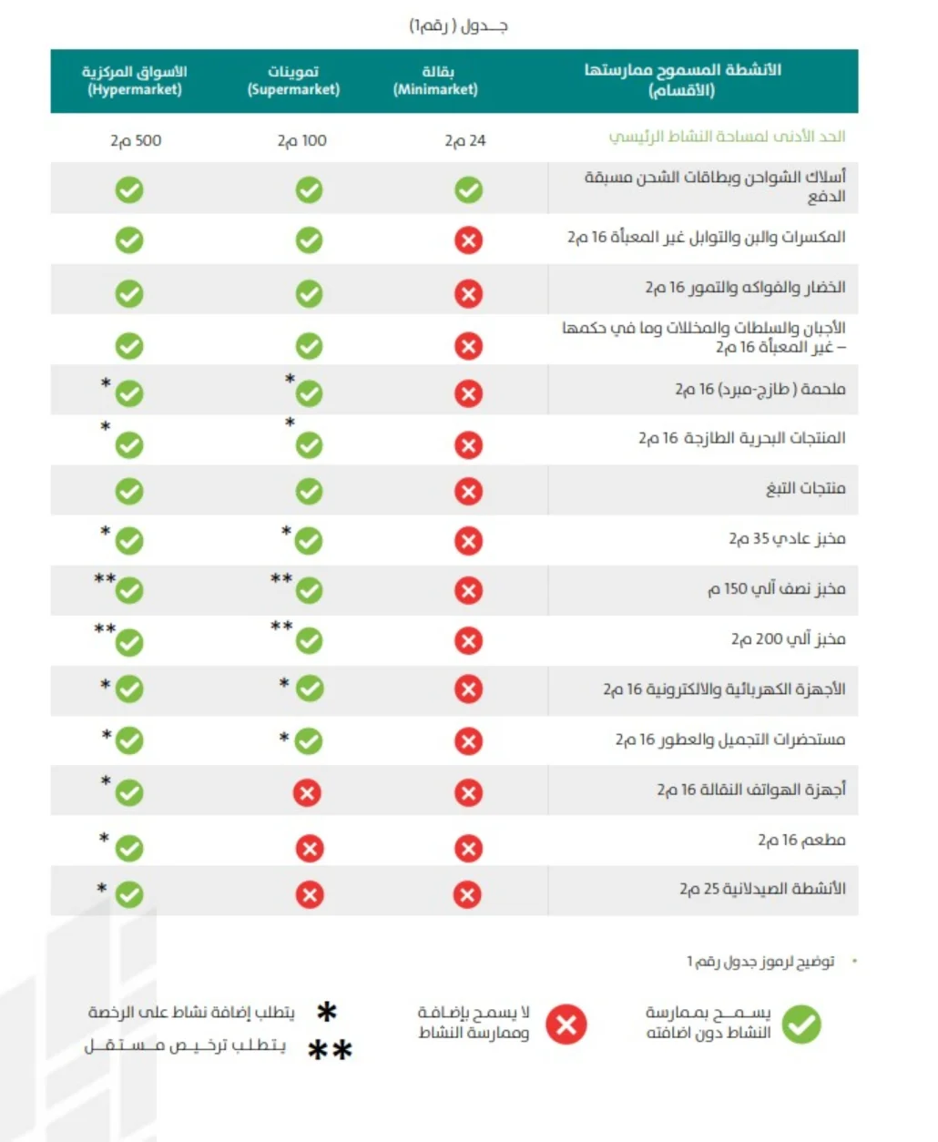 وعلى مستوى المتطلبات المكانية، اشترطت التحديثات أن يكون الموقع على شارع تجاري وفق الأنظمة والتعليمات، وأن يكون ضمن المباني التجارية أو ضمن المواقع المخصصة للاستخدام التجاري.