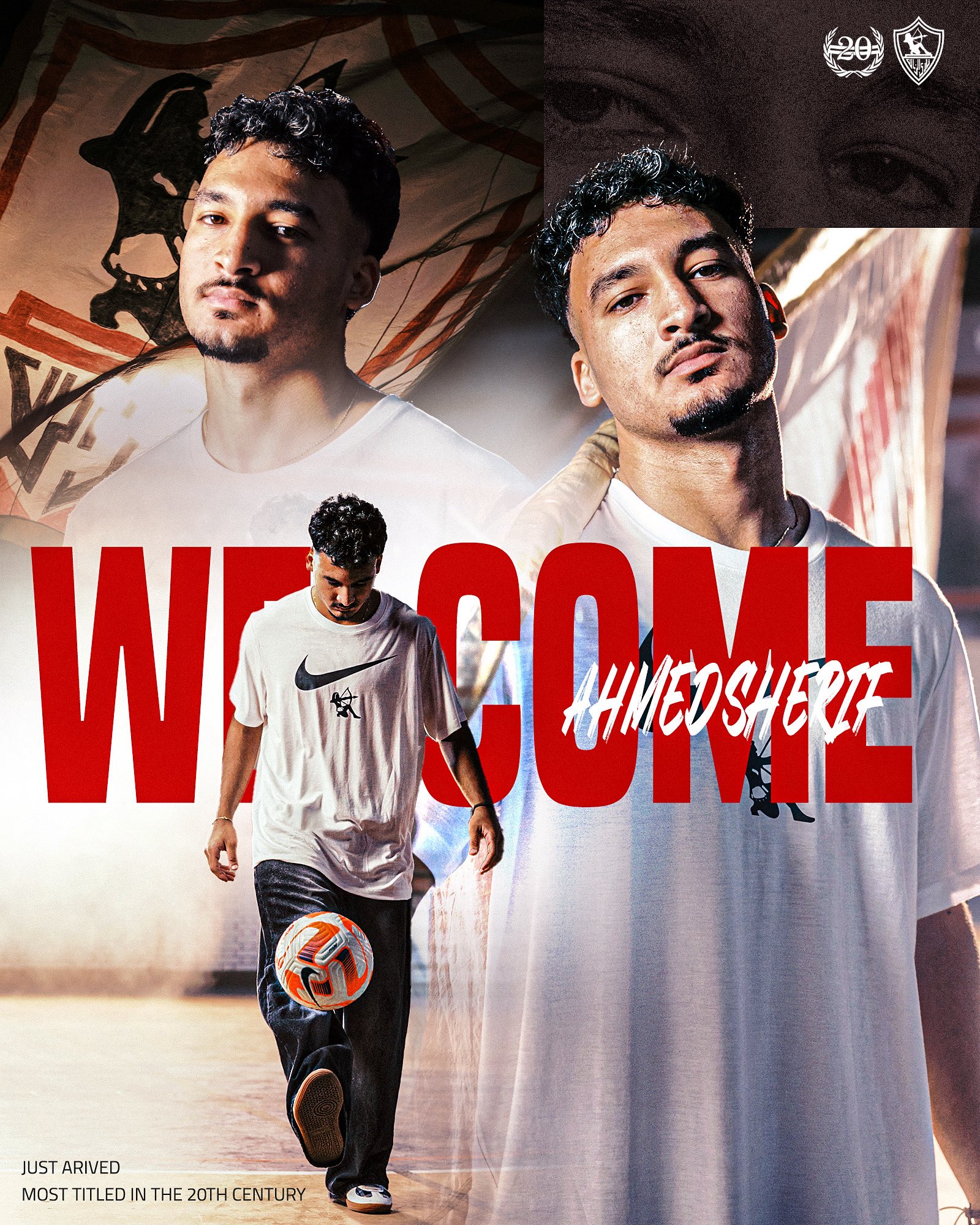 ونشر النادي عبر حسابه على فيسبوك مقطع فيديو يستعرض فيه لاعبه الجديد مهاراته، وقال “في الكورفا سود… جمهور أسود، الزملكاوي أحمد شريف هنا” وذلك دون الكشف عن القيمة المالية للتعاقد.