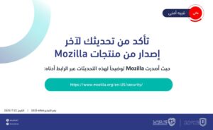 وقال المركز الوطني، عبر حسابه بمنصة “إكس”، أن شركة Mozilla أصدرت تنبيهًا أمنيًا للإعلان عن ثغرات أمنية في منتجاتها.
