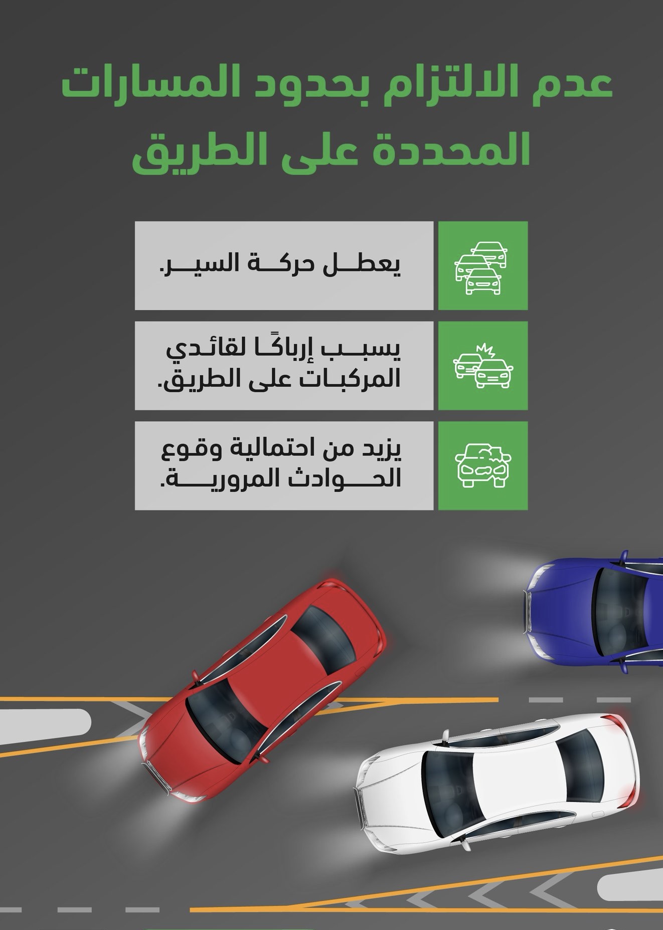 الداخلية: الانحراف عن المسارات المحددة مخالفة مرورية تصل غرامتها إلى 500 ريال