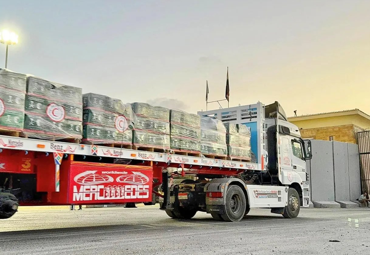 عبور 7 شاحنات إغاثية سعودية جديدة إلى قطاع غزة