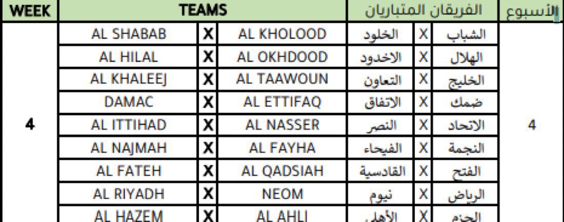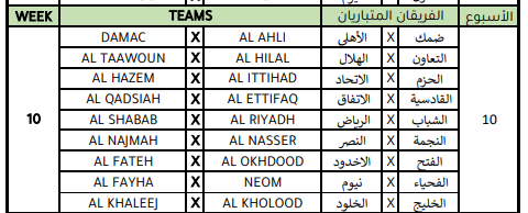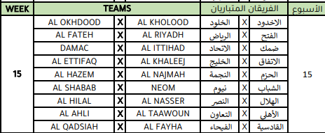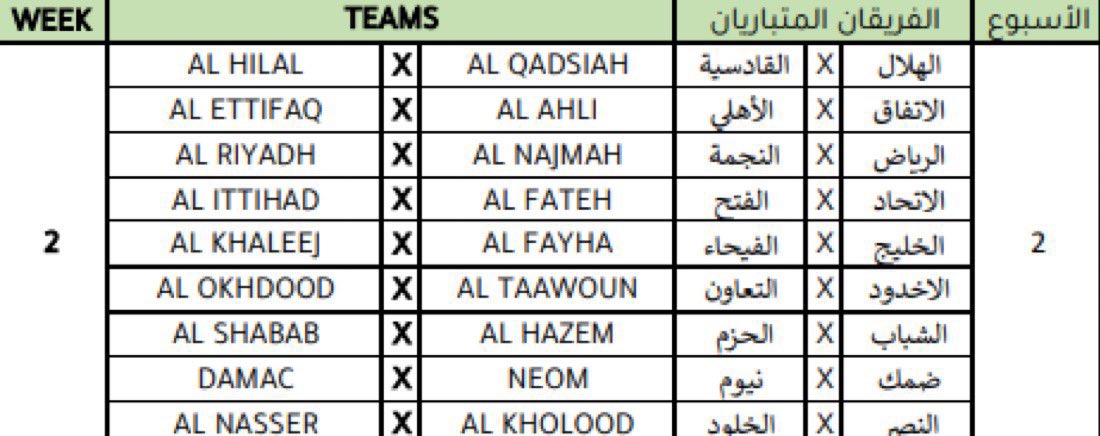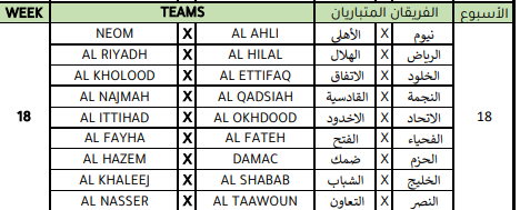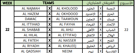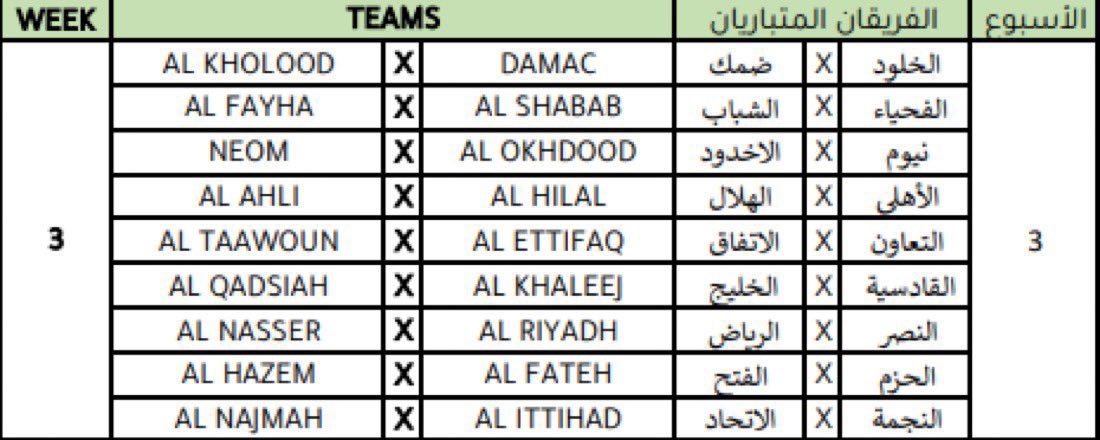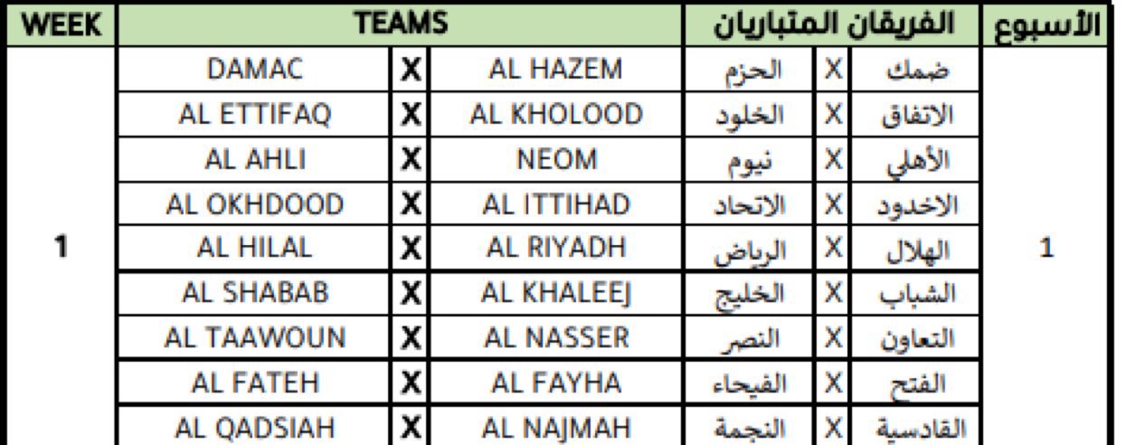 وسيستهل حامل اللقب الاتحاد مبارياته ضد الأخدود، فيما سيستضيف الهلال يستضيف نادي الرياض والنصر سيحل ضيفًا على التعاون والأهلي سيواجه نيوم في جدة .