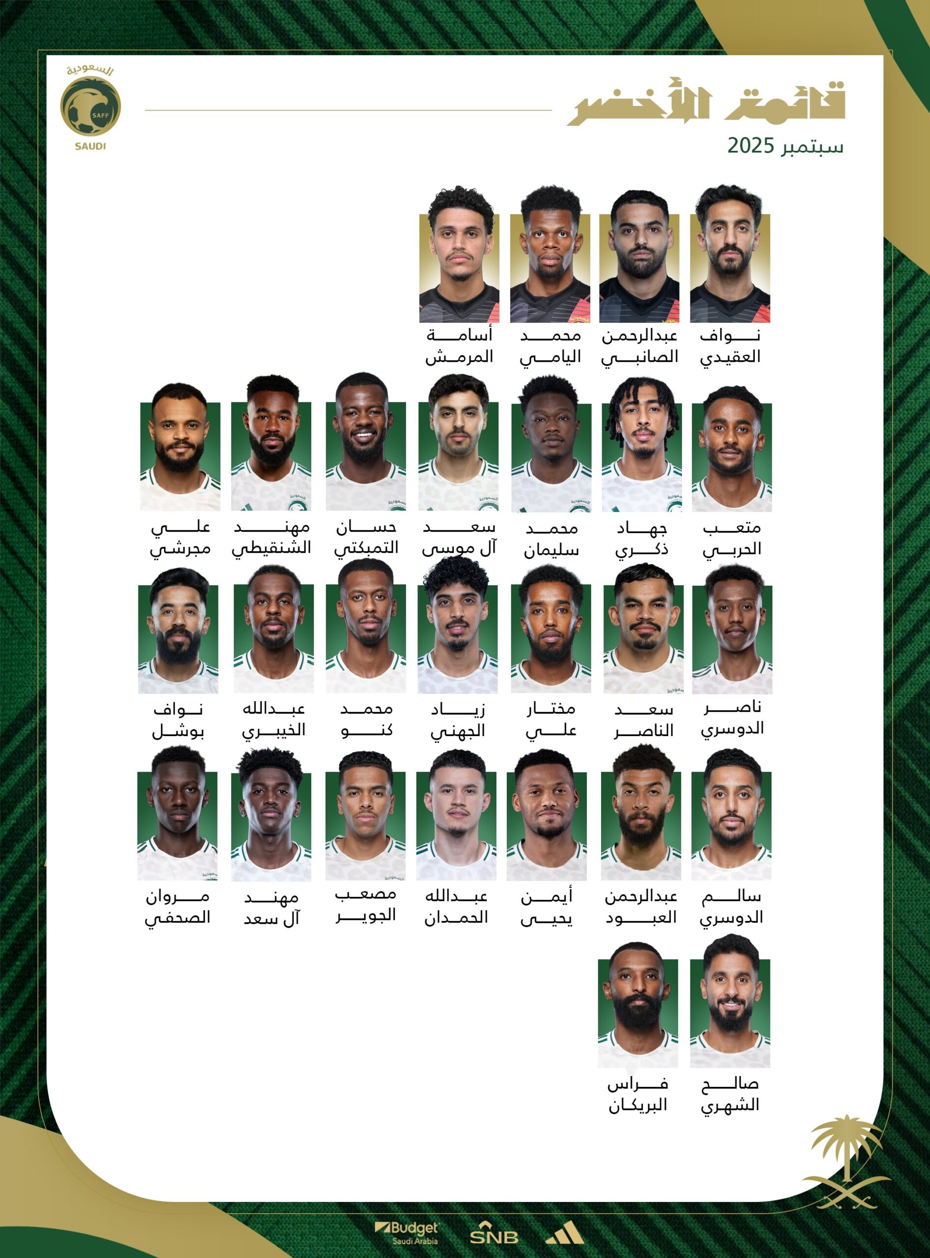 أعلن المدير الفني للمنتخب الوطني إيرڤي رينارد، اليوم، عن قائمة الأخضر المشاركة في المعسكر الإعدادي الذي سيقام في جمهورية التشيك خلال فترة أيام “فيفا” لشهر سبتمبر المقبل، وذلك ضمن التحضيرات لخوض منافسات الملحق الآسيوي المؤهل إلى نهائيات كأس العالم 2026، والمقرر إقامته في شهر أكتوبر بمدينة جدة.