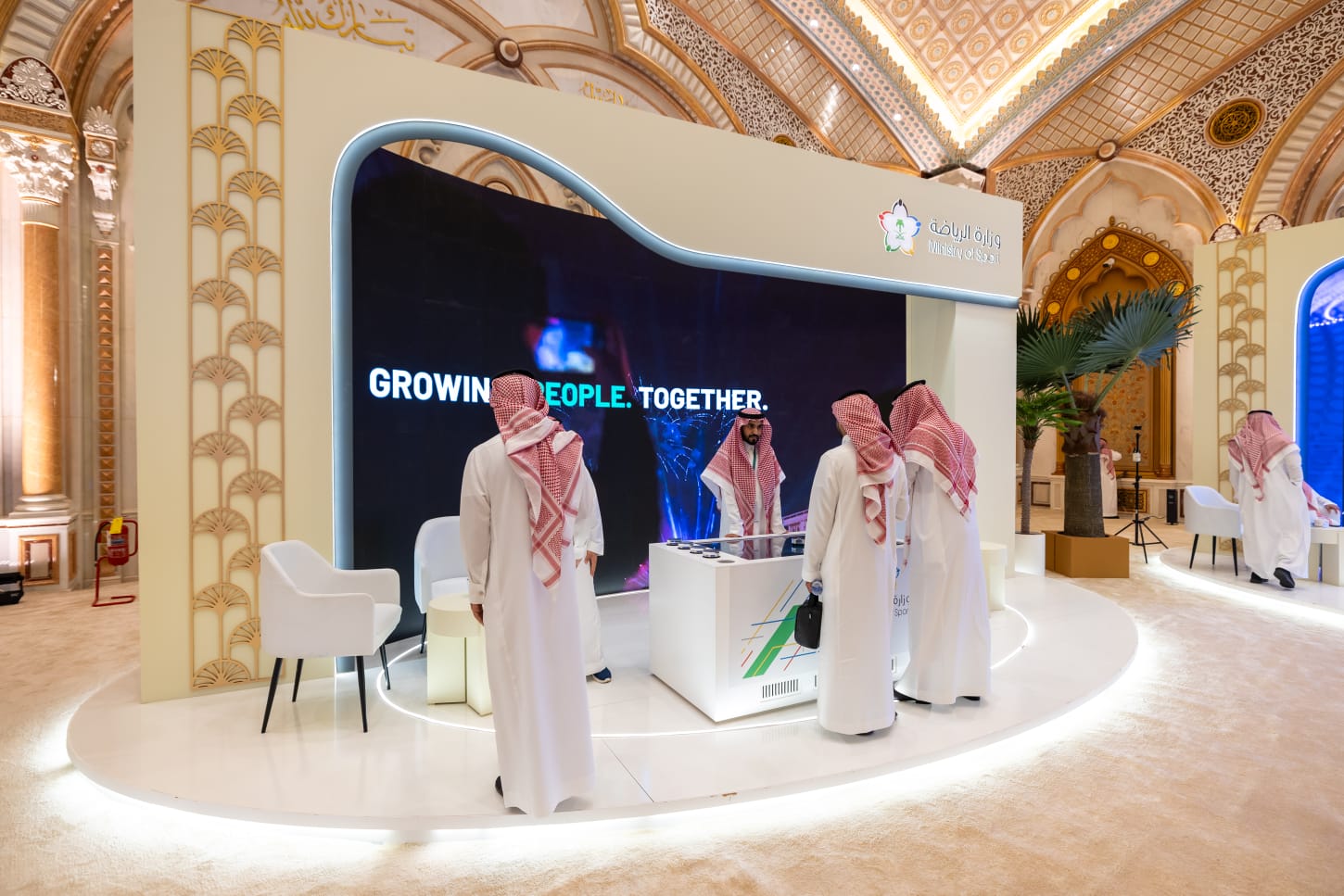 وجرى خلال الجناح استعراض أبرز المبادرات والبرامج التي أطلقتها الوزارة في مختلف المجالات الرياضية، والتي عكست قصة تحول نوعية في القطاع، وذلك عبر شاشات تفاعلية عرضت منظومة رقمية متكاملة تضم الملعب الرقمي، والمنصة الموحّدة، ومبادرة تمكين المنشآت الذكية، بما يمنح تجربة جماهيرية سلسة وربطًا ذكيًا للبنية التحتية، إضافةً إلى تقديم تحليلات داعمة لصناعة القرار وتطوير القطاع الرياضي، فضلًا عن تسليط الضوء على الاستضافات الرياضية الكبرى، وفي مقدمتها ملف الاستضافات العالمية الذي كان آخرها استضافة كأس العالم 2034م.