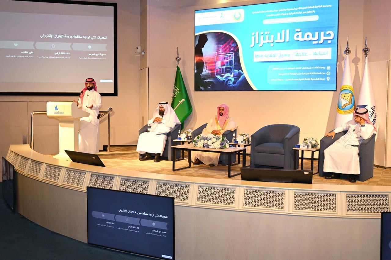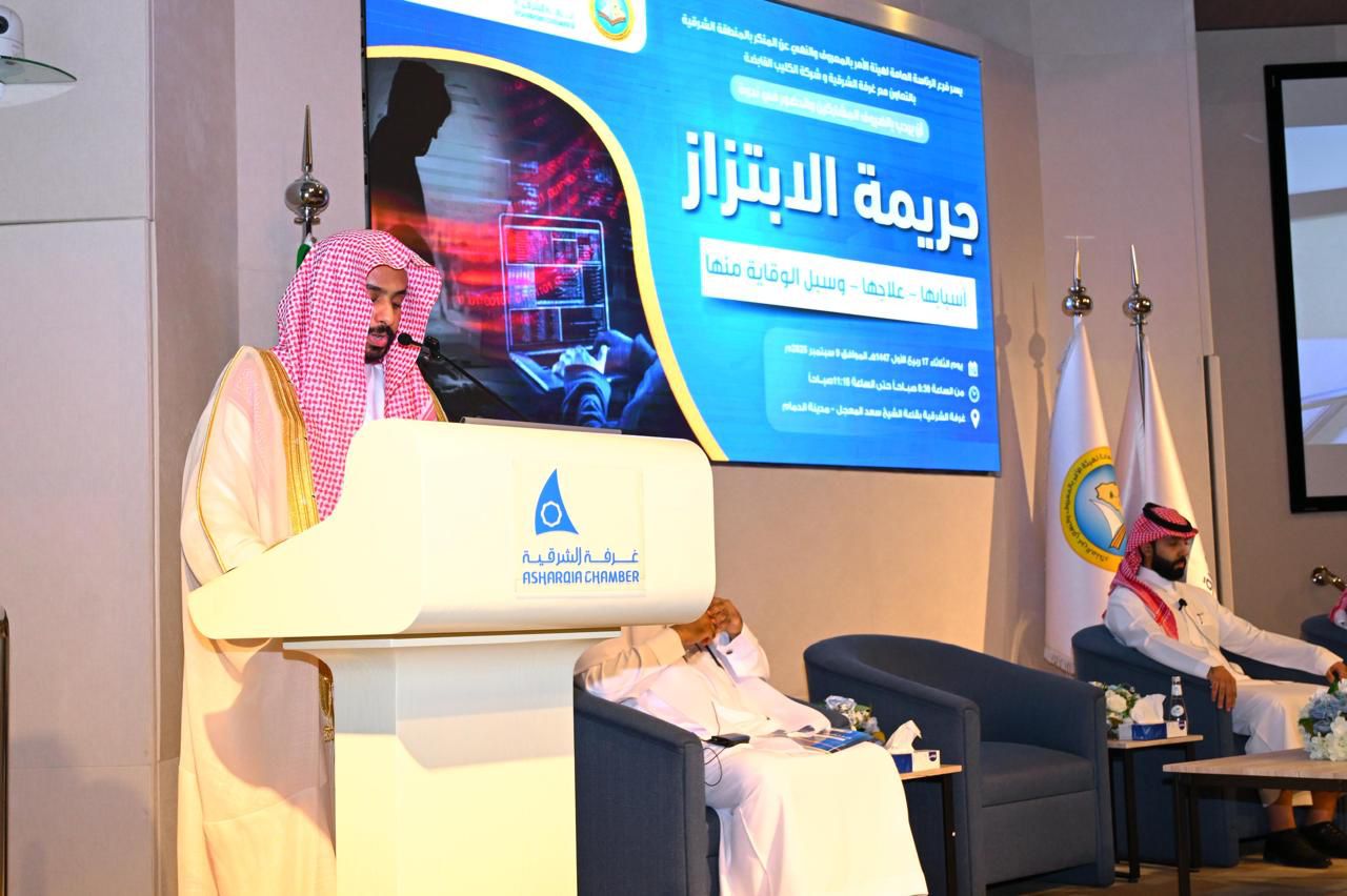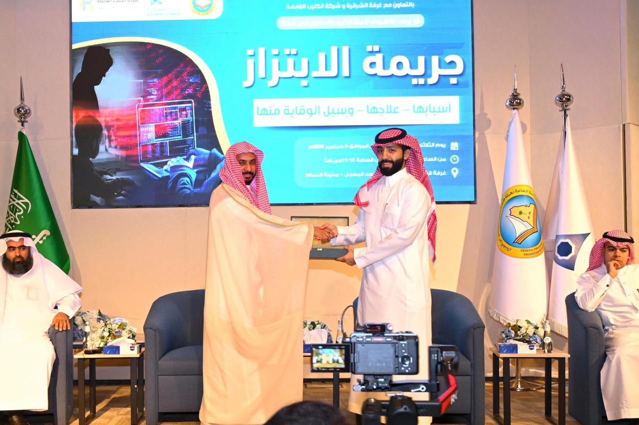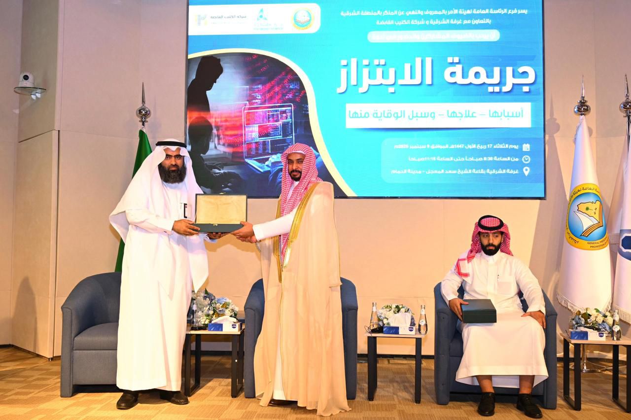 نظم فرع الرئاسة العامة لهيئة الأمر بالمعروف والنهي عن المنكر بالمنطقة الشرقية، بالتعاون مع النيابة العامة، وإدارة التعليم، ومجمع إرادة والصحة النفسية بالمنطقة، ندوة بعنوان: «جريمة الابتزاز علاجها وسبل الوقاية منها»، بالشراكة مع شركة الكليب القابضة وذلك في قاعة الغرفة التجارية بالمنطقة.