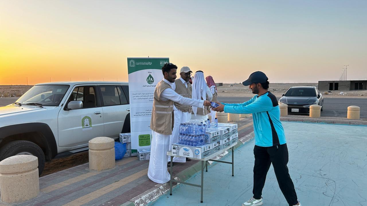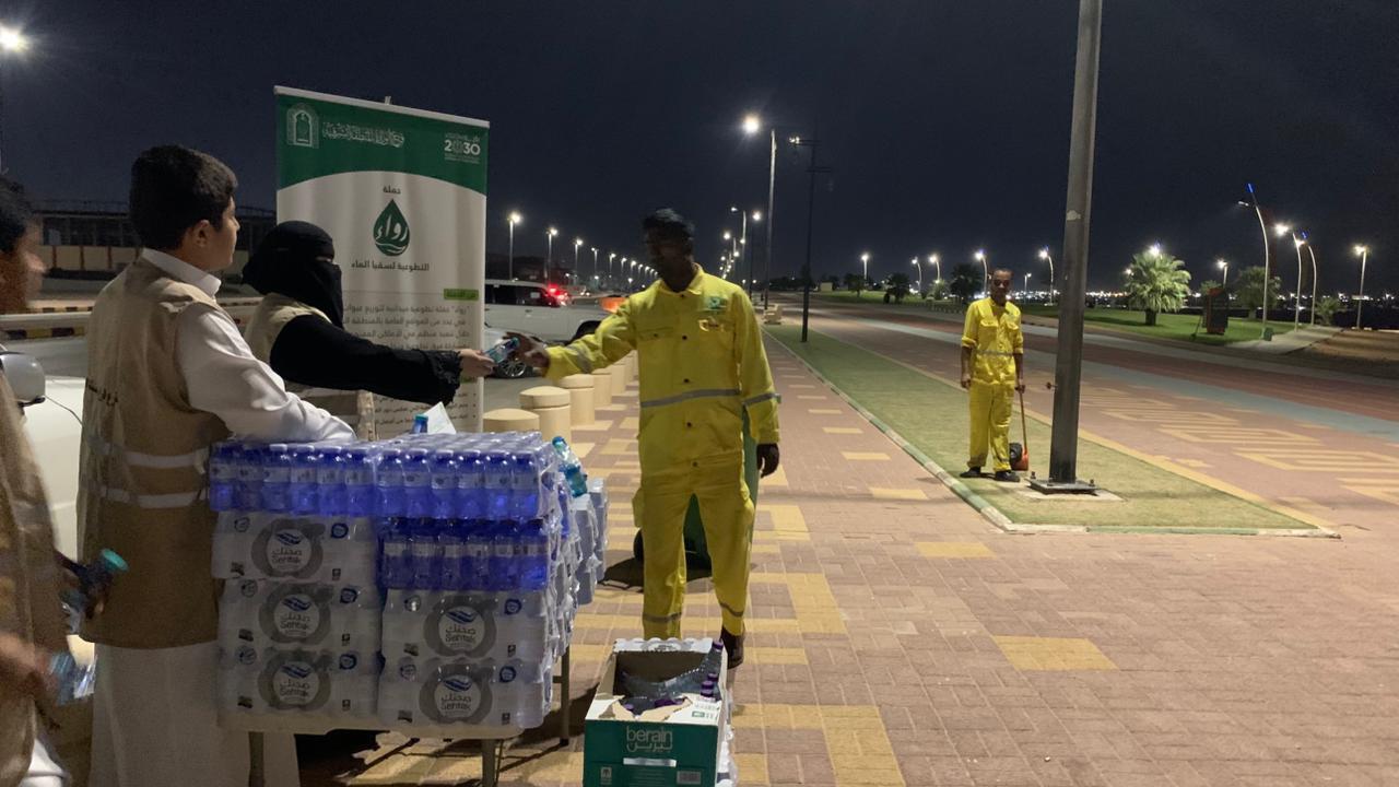 كما انطلقت فعاليات الحملة في محافظة حفر الباطن هذا الأسبوع، بمشاركة 85 متطوعًا ومتطوعة، حيث تم توفير أكثر من 10 آلاف عبوة ماء لتوزيعها على المصلين، ومرتادي الأماكن العامة، ومسارات المشي، على أن تستمر حتى يوم غدٍ الخميس التاسع عشر ربيع الأول الجاري.