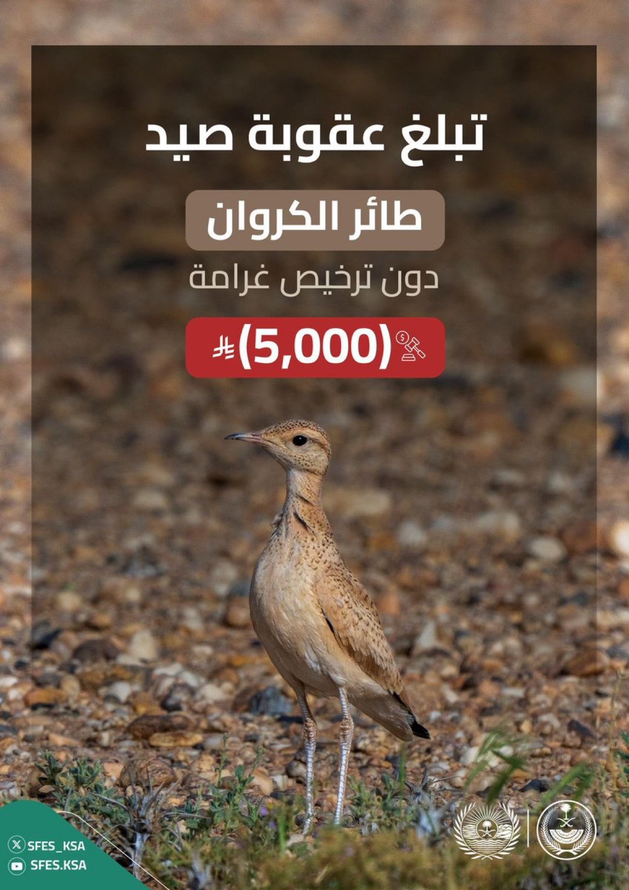 غرامة (5,000) ريال لصيد طائر الكروان دون ترخيص