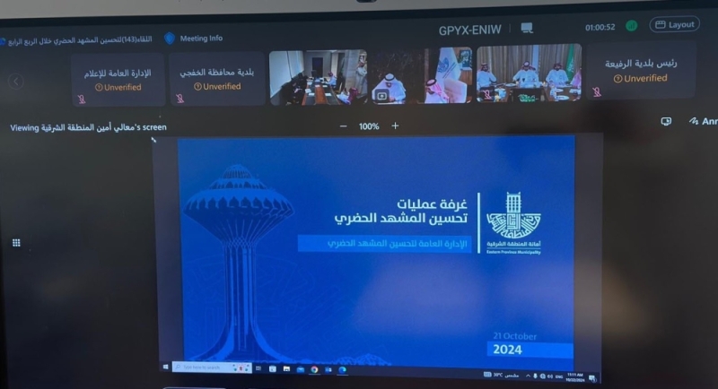 عقدت أمانة المنطقة الشرقية اليوم، اجتماع برنامج تحسين المشهد الحضري؛ لمعالجة وإزالة مظاهر التشوه البصري، بحضور أمين المنطقة المهندس فهد بن محمد الجبير، والوكلاء ومديري الإدارات ورؤساء البلديات، وممثلي الجهات ذات العلاقة، وذلك بمقر الأمانة.