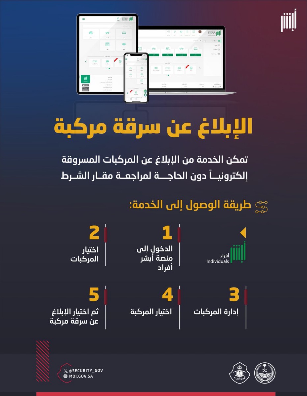 الإبلاغ عن سرقة مركبة إلكترونياً عبر أبشر