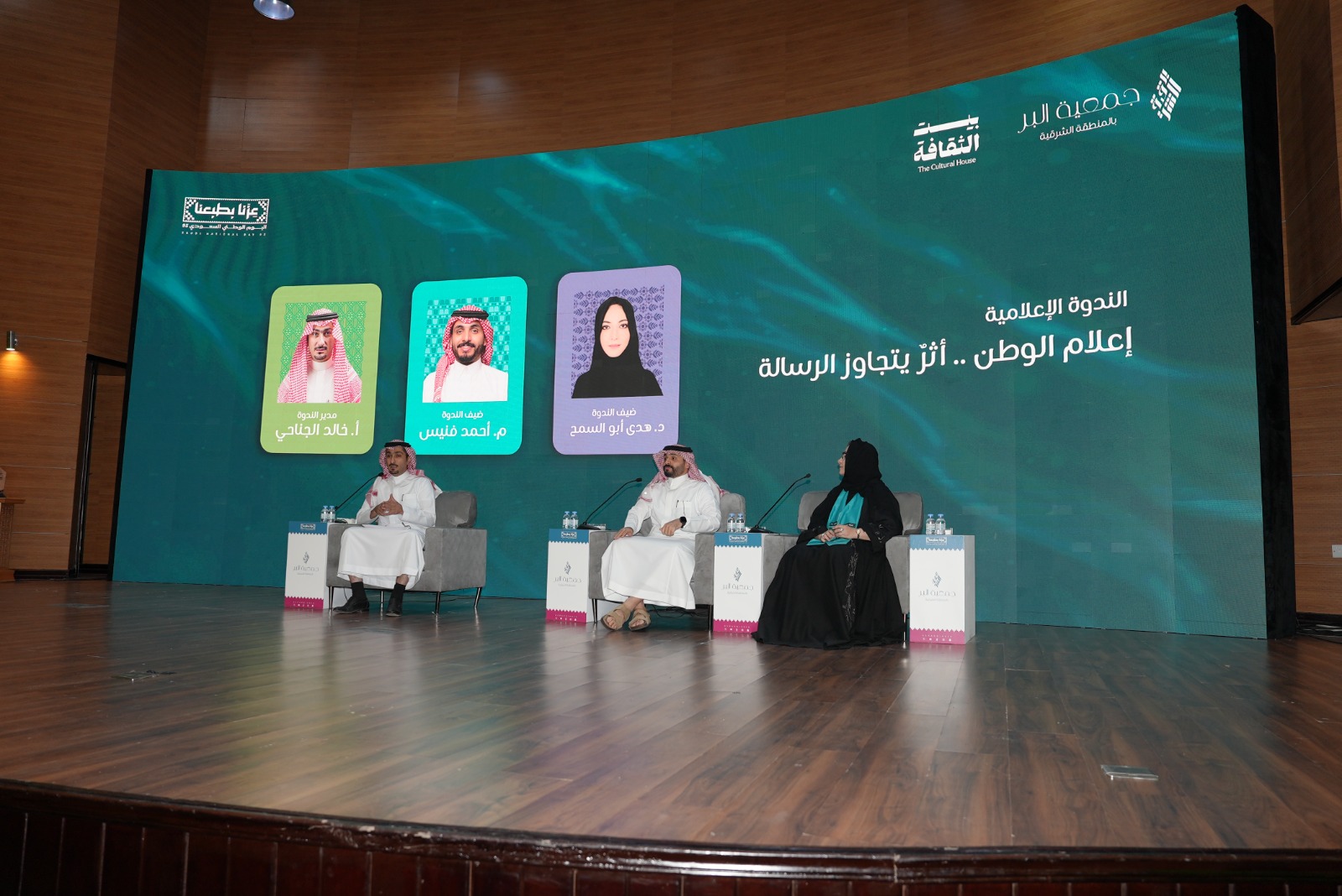 أقامت جمعية البر بالمنطقة الشرقية الندوة الإعلامية بعنوان:”إعلام الوطن.. أثر يتجاوز الرسالة”، وذلك بمناسبة اليوم الوطني الخامس والتسعين، بمشاركة نخبة من الإعلاميين والخبراء في القطاع الإعلامي والقطاع غير الربحي.